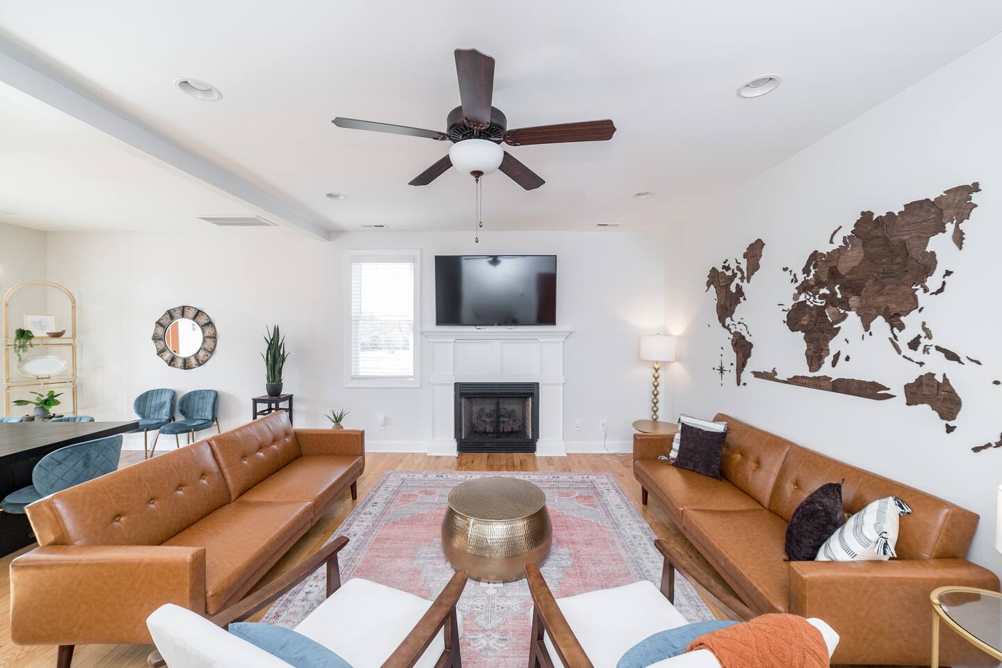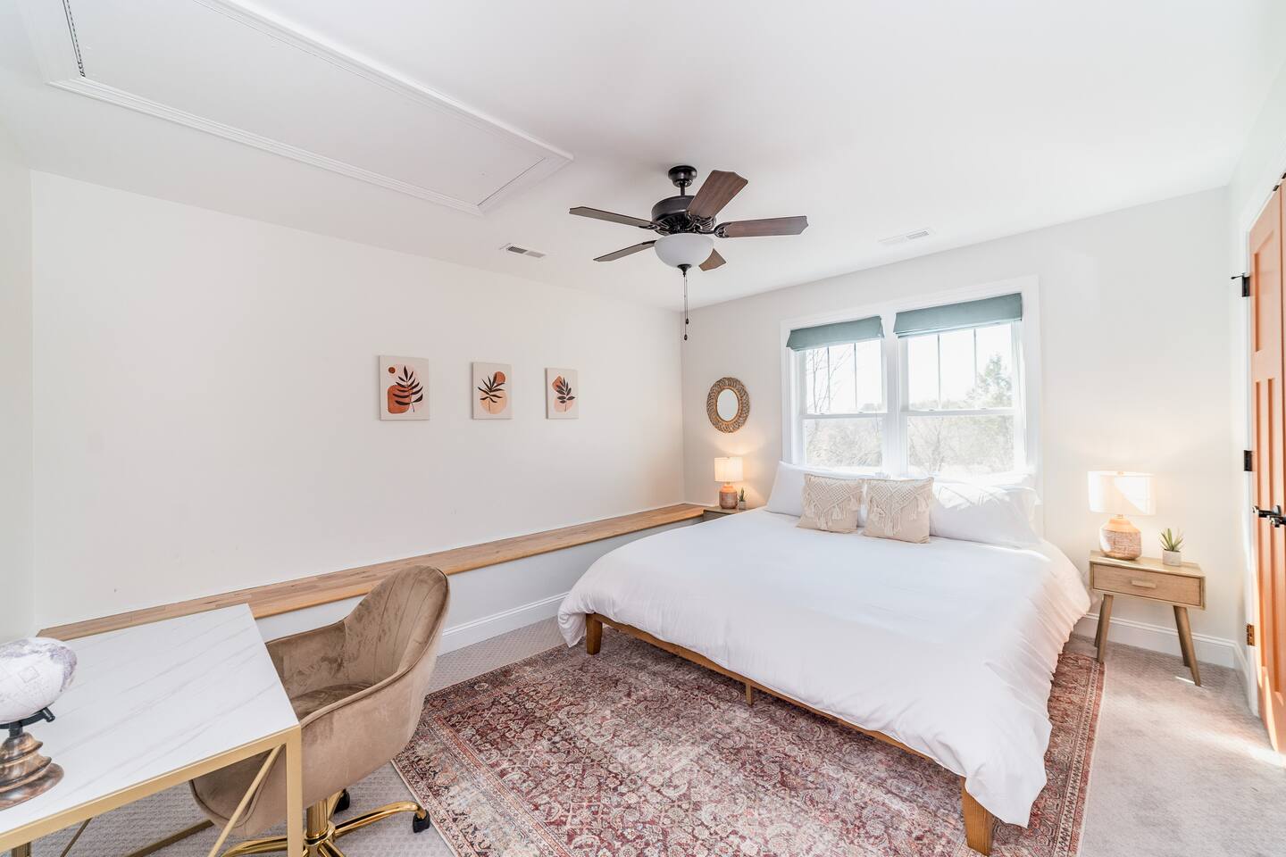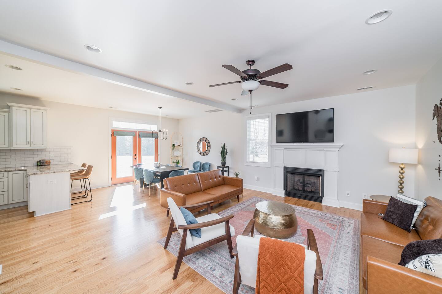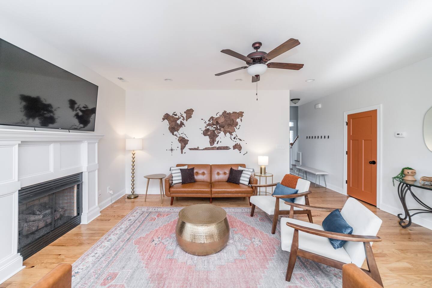 Sometimes it's hard to scroll through hundreds of listings and know which one will give you a clean and welcoming place with everything you need. Let's give you a rundown of what you can expect at the Traveler. (Fun fact: each bedroom is named after a country where the owner of the home has traveled!) **DOWNSTAIRS** KITCHEN -fridge, oven/range, microwave, dishwasher -Keurig + regular coffee pot & tea kettle -pots/pans, dishware, glasses, & everything you need to make meals! DINING ROOM -table for 8 -2 barstools LIVING ROOM -2 couches -2 accent chairs -Smart TV w/ Netflix and other streaming apps (sorry, no use of fireplace) FULL BATH -toilet -shower/tub combo -sink w/ large vanity & storage closet -towels & washcloths -shampoo, conditioner, body wash LAUNDRY ROOM -washer/dryer -iron + ironing board PRIMARY BEDROOM (Rwanda) -king bed -dresser -walk-in closet -oversized chair -large primary bathroom -access to back deck PRIMARY BATHROOM -sink & large vanity -linen closet -separate room for toilet & shower -towels & washcloths -shampoo, conditioner, body wash HONDURAS BEDROOM -trundle bed (full + twin) -hanging storage in closet & hangers **UPSTAIRS** SUDAN BEDROOM -king bed -closet & long ledge -desk & chair KENYA BEDROOM -queen bed -dresser & closet OPEN LANDING: -2 yoga mats -2 yoga blocks -window with mountain views MOVIE ROOM: -large sofa w/ recliner chairs -chalkboard wall -ps3 gaming console+ board games -trundle bed (twin + twin) -desk & chair HALLWAY FULL BATHROOM -shower/tub combo -sink, toilet, storage closet -towels & washcloths -shampoo, conditioner, body wash CLIMATE CONTROL: The house is heated and cooled by central heat and air. PARKING: There is off-street parking in the driveway for a maximum of 4-5 cars. (no street parking) OUTSIDE Back Deck: outdoor table and chairs for 8, large level yard, gas grill, fire pit + Adirondack chairs (we'll provide the pit and you bring the rest!) CHECK IN: Guests check in at their own convenience between 4pm - 10pm with a personalized code. WHAT'S NEARBY: Groceries: 7 min (Kroger) Restaurants: 7 min (steakhouse, fast food, mexican food, pizza, and more!) Liberty University: 13 min University of Lynchburg: 19 min Thomas Jefferson's Poplar Forest: 8 min Historic Downtown LYH: 21 min Shopping (Target, mall, etc.): 13 min Seaquest: 14 min Snowflex (year-round skiing and tubing): 11 min Appomattox Courthouse: 35 min Hiking at Sharp Top Mountain: 40 min Popular day trips include: hiking in the Blue Ridge Mountains, driving the scenic Blue Ridge Parkway, Natural Bridge, Virginia Safari Park, D-Day Memorial and Smith Mountain Lake. HOSTED BY: The Traveler is hosted by All Belong Co, a boutique hospitality team dedicated to providing 5 star stays. You'll be in the hands of Superhosts.