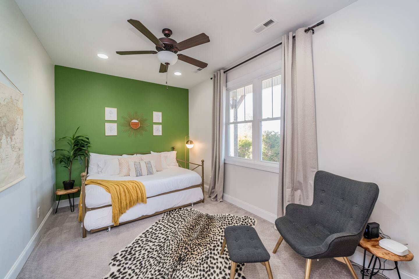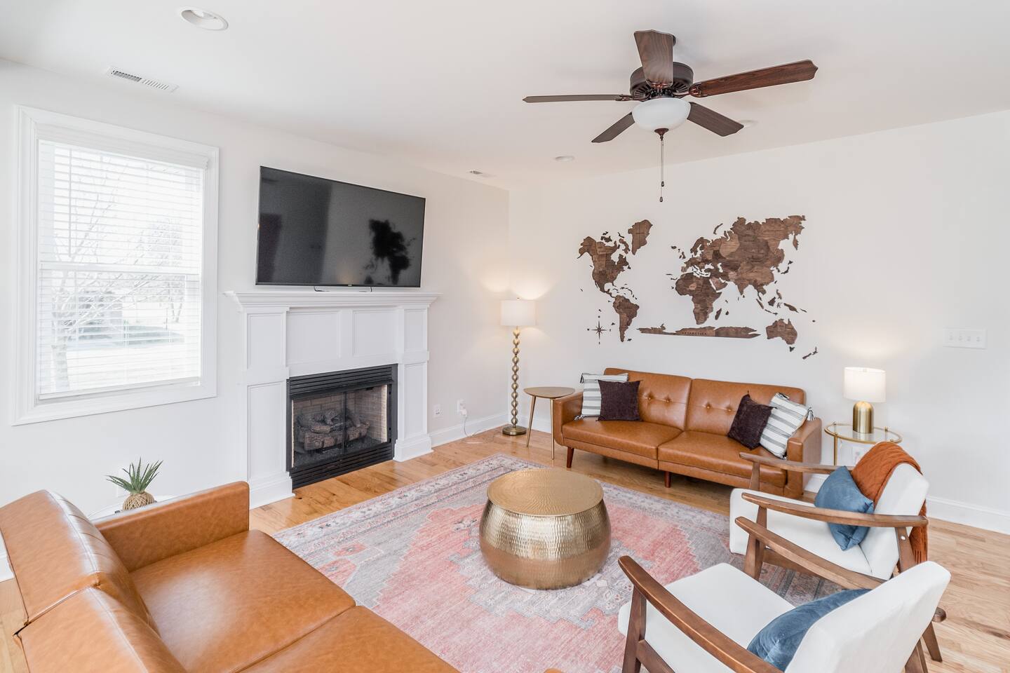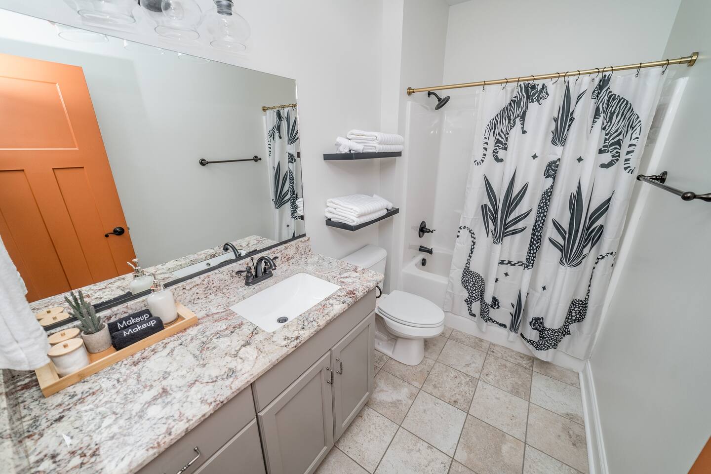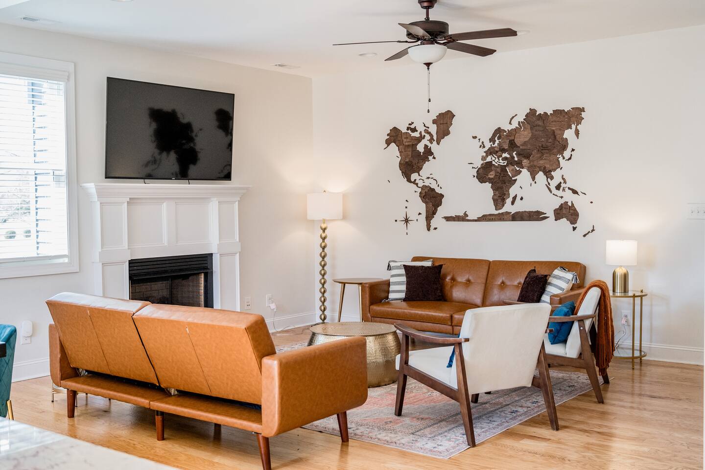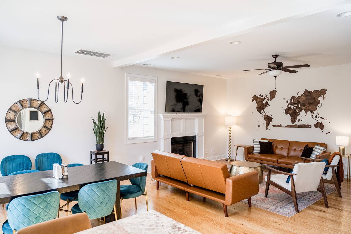 Sometimes it's hard to scroll through hundreds of listings and know which one will give you a clean and welcoming place with everything you need. Let's give you a rundown of what you can expect at the Traveler. (Fun fact: each bedroom is named after a country where the owner of the home has traveled!) **DOWNSTAIRS** KITCHEN -fridge, oven/range, microwave, dishwasher -Keurig + regular coffee pot & tea kettle -pots/pans, dishware, glasses, & everything you need to make meals! DINING ROOM -table for 8 -2 barstools LIVING ROOM -2 couches -2 accent chairs -Smart TV w/ Netflix and other streaming apps (sorry, no use of fireplace) FULL BATH -toilet -shower/tub combo -sink w/ large vanity & storage closet -towels & washcloths -shampoo, conditioner, body wash LAUNDRY ROOM -washer/dryer -iron + ironing board PRIMARY BEDROOM (Rwanda) -king bed -dresser -walk-in closet -oversized chair -large primary bathroom -access to back deck PRIMARY BATHROOM -sink & large vanity -linen closet -separate room for toilet & shower -towels & washcloths -shampoo, conditioner, body wash HONDURAS BEDROOM -trundle bed (full + twin) -hanging storage in closet & hangers **UPSTAIRS** SUDAN BEDROOM -king bed -closet & long ledge -desk & chair KENYA BEDROOM -queen bed -dresser & closet OPEN LANDING: -2 yoga mats -2 yoga blocks -window with mountain views MOVIE ROOM: -large sofa w/ recliner chairs -chalkboard wall -ps3 gaming console+ board games -trundle bed (twin + twin) -desk & chair HALLWAY FULL BATHROOM -shower/tub combo -sink, toilet, storage closet -towels & washcloths -shampoo, conditioner, body wash CLIMATE CONTROL: The house is heated and cooled by central heat and air. PARKING: There is off-street parking in the driveway for a maximum of 4-5 cars. (no street parking) OUTSIDE Back Deck: outdoor table and chairs for 8, large level yard, gas grill, fire pit + Adirondack chairs (we'll provide the pit and you bring the rest!) CHECK IN: Guests check in at their own convenience between 4pm - 10pm with a personalized code. WHAT'S NEARBY: Groceries: 7 min (Kroger) Restaurants: 7 min (steakhouse, fast food, mexican food, pizza, and more!) Liberty University: 13 min University of Lynchburg: 19 min Thomas Jefferson's Poplar Forest: 8 min Historic Downtown LYH: 21 min Shopping (Target, mall, etc.): 13 min Seaquest: 14 min Snowflex (year-round skiing and tubing): 11 min Appomattox Courthouse: 35 min Hiking at Sharp Top Mountain: 40 min Popular day trips include: hiking in the Blue Ridge Mountains, driving the scenic Blue Ridge Parkway, Natural Bridge, Virginia Safari Park, D-Day Memorial and Smith Mountain Lake. HOSTED BY: The Traveler is hosted by All Belong Co, a boutique hospitality team dedicated to providing 5 star stays. You'll be in the hands of Superhosts.