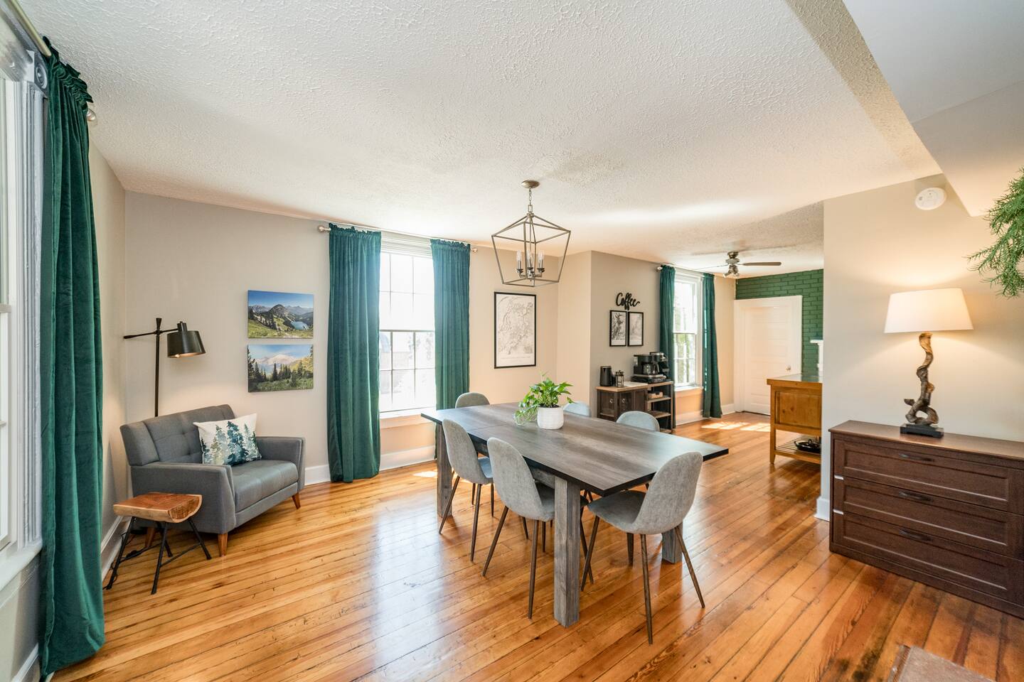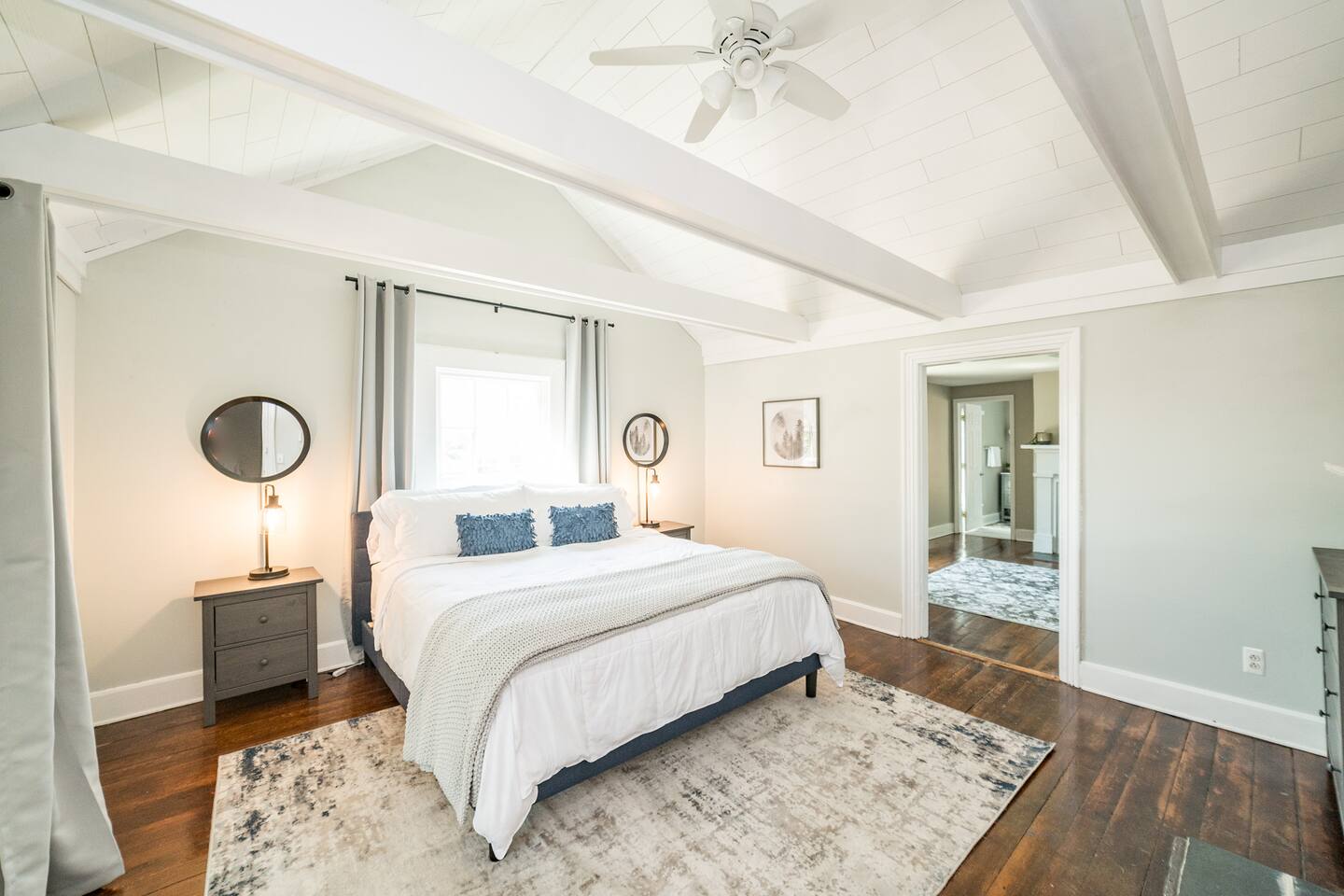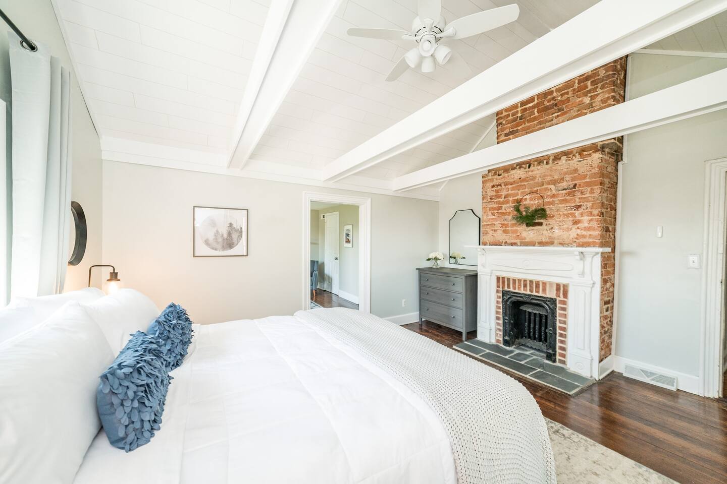 Victorian-framed home packed w/ historic character + modern amenities! -Awesome location in quiet historic district 3 min to downtown Lynchburg -Romantic primary suite, 2 king bedrooms -Subtle national parks theme gives it the name "Park Place" -Walk 10 min to downtown OR along miles of Blackwater Creek nature trails -Fenced park w/ playground & awesome bagel shop in the neighborhood -12 min to Liberty U & Univ of Lynchburg. Extended stays welcome!