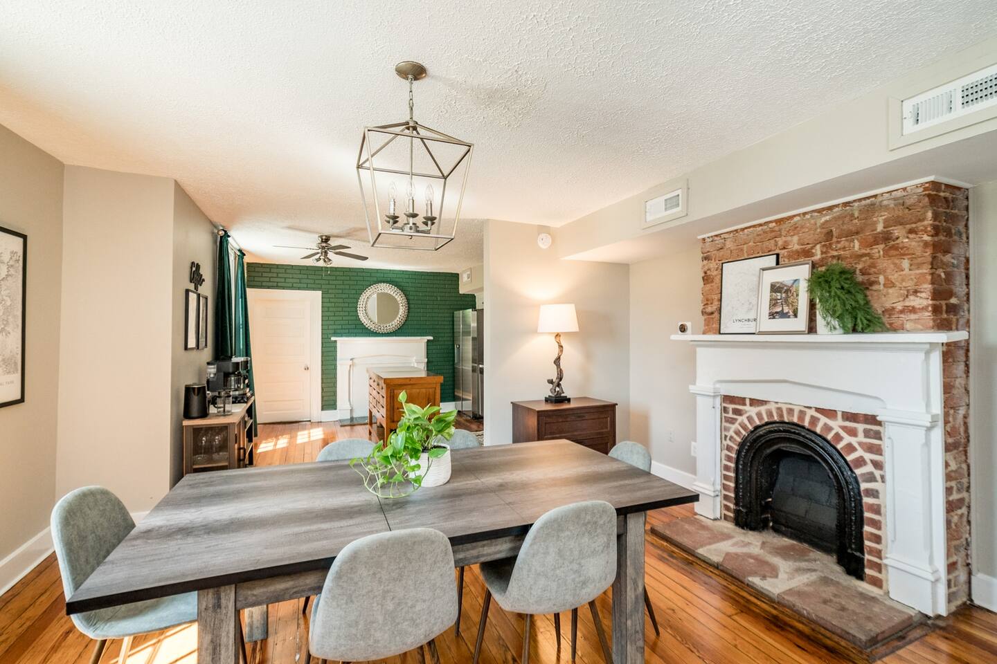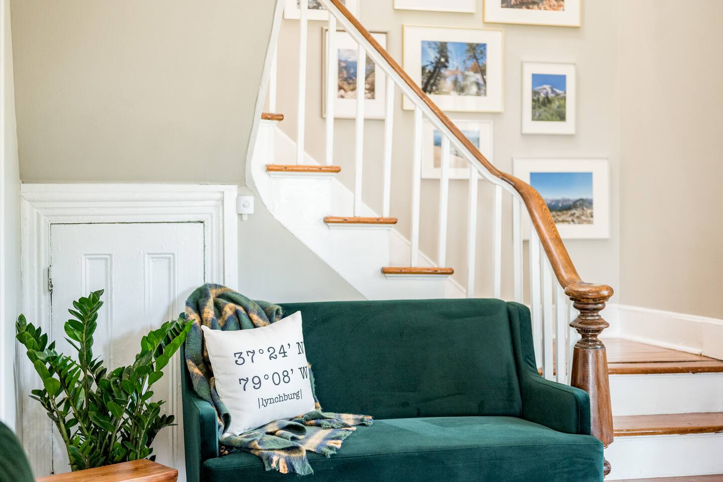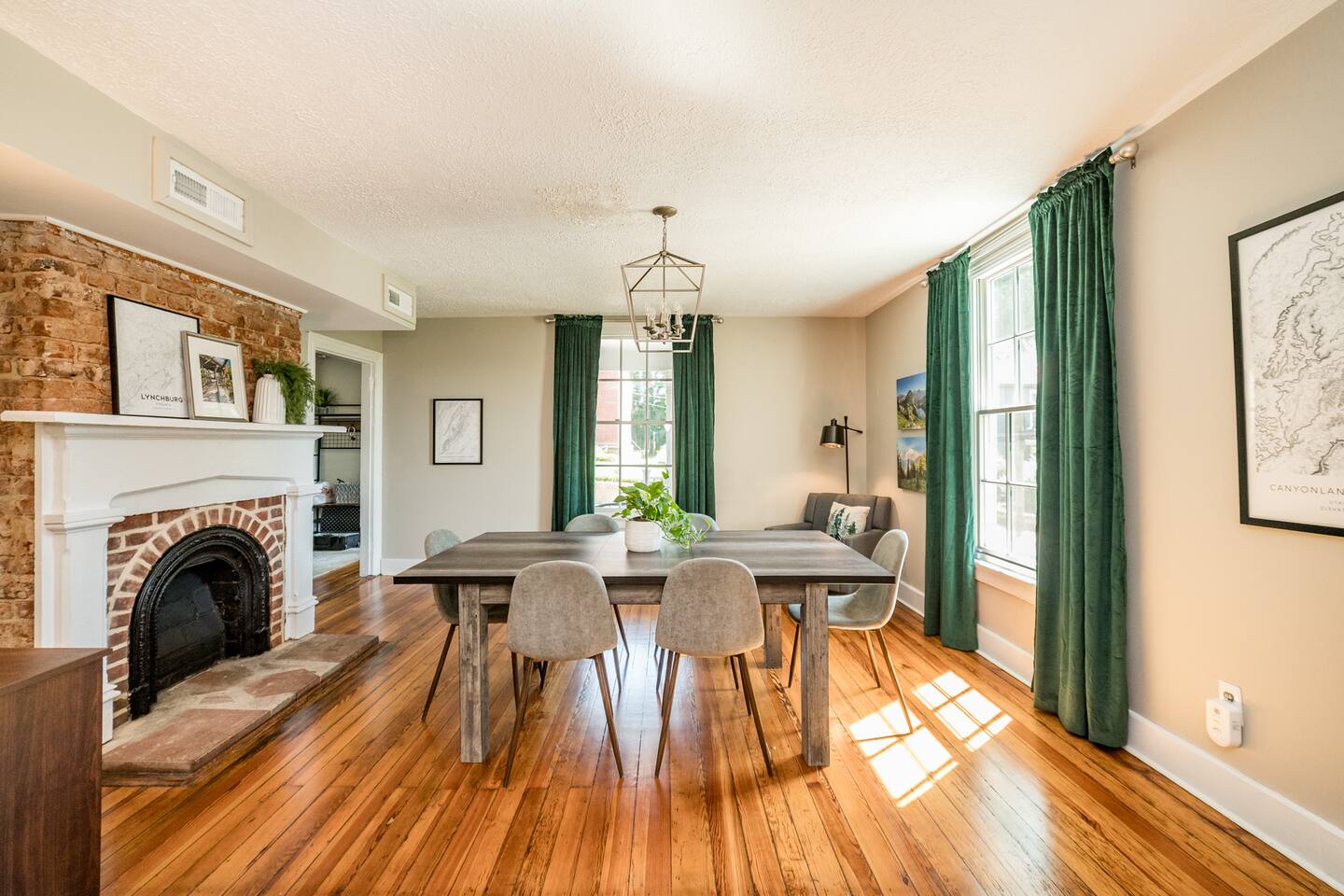 We feel most connected to one another as a couple when we're in nature visiting one of our country's 63 national parks. (So far we've visited 41, and it's on our bucket list to explore them all!) Whether you're a national park junkie or haven't visited a single one, we've created "Park Place" in hopes that it will bring you, our guests, lasting memories and true connection while you're here. Enjoy a game of National Park monopoly (yes, we've got it!), read more about the parks, enjoy our travel photos, and even check off which parks you've personally visited. This home is historic in all the best ways: -charm & character -original curved wood banister -original floors that aren't 100% level -original brick mantels in every room But also modern in all the best ways, too: -fast wifi -central heat & air -energy efficient windows & insulation Here's what you can expect at "Park Place": ***MAIN FLOOR*** ENTRYWAY -high ceilings -original curved wood staircase railing -hall tree for hanging coats, etc -photo opp spot! LIVING ROOM -queen sized sleeper sofa & loveseat -large smart TV DINING ROOM -table & chairs for 6 -historic brick fireplace KITCHEN -stainless appliances (fridge, microwave, electric range/oven, dishwasher) -coffee station w/ Keurig + regular coffee pot -milk frother, coffee grinder -pots/pans, dishes, salt & pepper, oil, etc. LAUNDRY ROOM -washer/dryer -iron & ironing board HALF BATH -toilet & sink OUTSIDE -front porch w/ seating -side porch with gas grill -outdoor table w/ 4 chairs ***UPSTAIRS*** PRIMARY BEDROOM -king bed -dresser -blackout curtains -en suite office & bathroom OFFICE -desk, -reading chair -closet PRIMARY BATHROOM -shower -large sink vanity -historic brick fireplace w/ flickering LED candles BEDROOM #2 -king bed -dresser -closet -smart TV -reading chair -blackout curtains HALL BATHROOM -tub/shower combo ________________________________________ PARKING: gravel driveway + free street parking along the side of the home CLIMATE CONTROL: central heat & air (Just as a heads' up, there is a 2-4 degree temperature difference between the upstairs and downstairs that can be felt in the most extreme seasons.) TV SERVICES - No cable. Smart TV streaming services only (guests must use personal login credentials) SECURITY: There is a Ring video doorbell camera on the front door & 2 outdoor security cameras that are not actively monitored. ***HOUSE RULES*** 1. NO SMOKING OR VAPING. You must be at least 25 ft away from the home and please dispose of all trash. We will impose an additional charge if our cleaning staff smells smoke after your stay. 2. NO EVENTS, GATHERINGS, OR PARTIES. No outside guests are allowed on the property without the permission of the hosts. We reserve this space for our confirmed, overnight guests. 3. Quiet hours after 10pm so that we can be good neighbors. 4. Please FOLLOW CHECKOUT INSTRUCTIONS in the Guest Manual before departing. 5. SHOES OFF the carpet, sofas & rugs so that we may keep the house in top condition. *We do not rent to anyone under the age of 25. WHAT'S NEARBY: Downtown Restaurants, Shopping, Breweries: 3-5 min Walking Nature Trails: at the end of our street! Amazement Square Children's Museum: 5 min James River: 5 min Seaquest Lynchburg: 13 min Liberty University: 10-15 min University of Lynchburg: 10 min AREA DAY TRIPS: Blue Ridge Parkway: 20 min Blue Ridge Mountain Hiking: 35-40 min Thomas Jefferson's Poplar Forest: 25 min Appomattox Court House: 30 min GUESTS WILL HAVE USE OF THE ENTIRE HOME. HOSTED BY: Park Place is a part of All Belong Co, a local hospitality group dedicated to providing 5 star stays. Our team will take good care of you! You can view this listing later by clicking the heart in the top right corner.