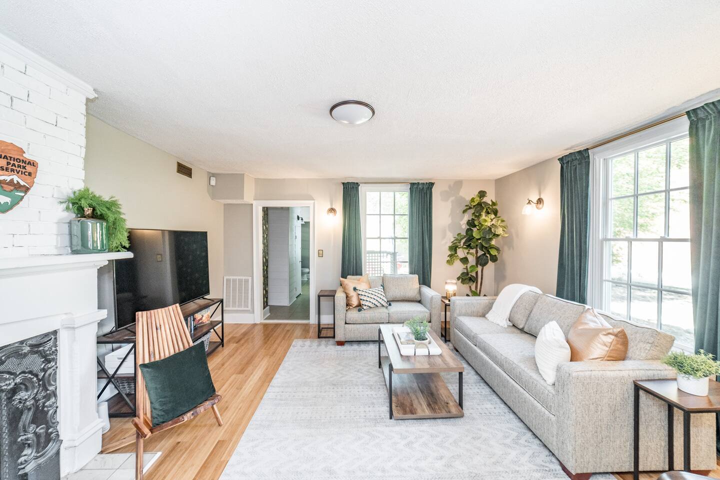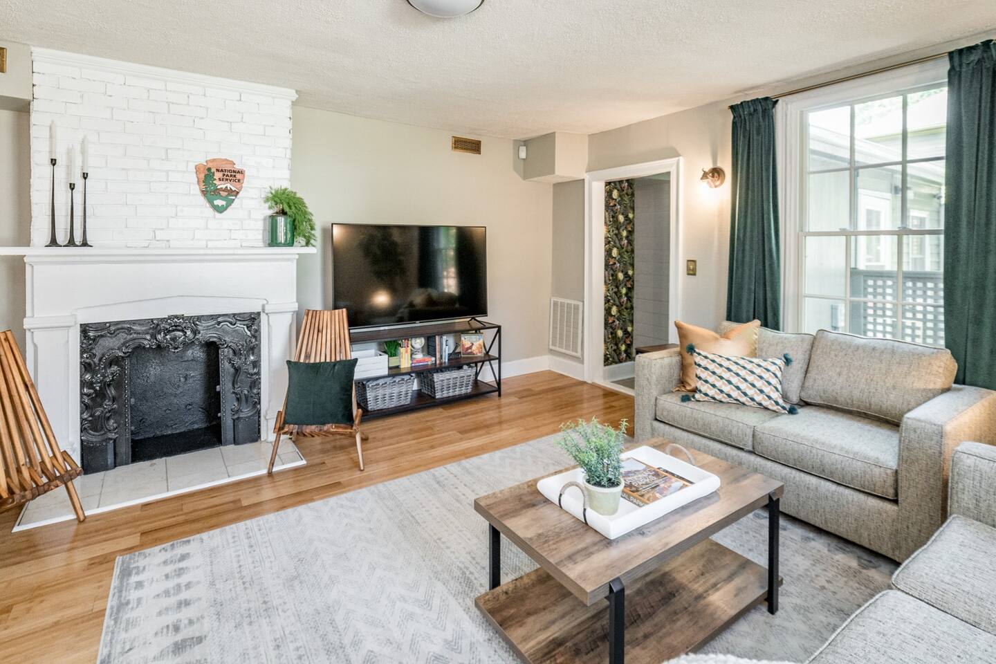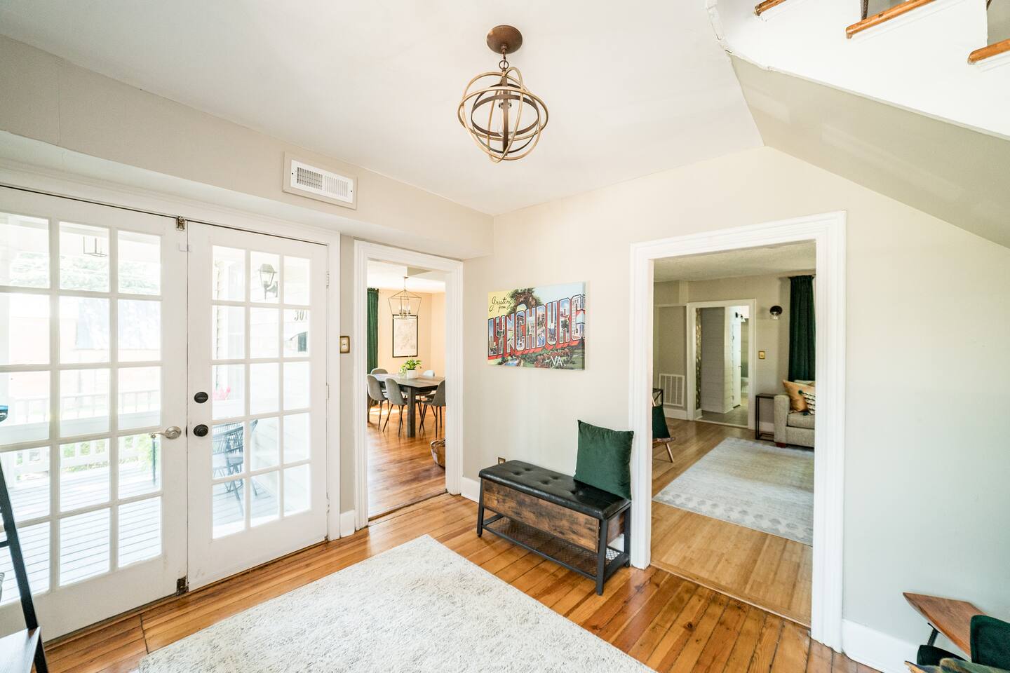 We feel most connected to one another as a couple when we're in nature visiting one of our country's 63 national parks. (So far we've visited 41, and it's on our bucket list to explore them all!) Whether you're a national park junkie or haven't visited a single one, we've created "Park Place" in hopes that it will bring you, our guests, lasting memories and true connection while you're here. Enjoy a game of National Park monopoly (yes, we've got it!), read more about the parks, enjoy our travel photos, and even check off which parks you've personally visited. This home is historic in all the best ways: -charm & character -original curved wood banister -original floors that aren't 100% level -original brick mantels in every room But also modern in all the best ways, too: -fast wifi -central heat & air -energy efficient windows & insulation Here's what you can expect at "Park Place": ***MAIN FLOOR*** ENTRYWAY -high ceilings -original curved wood staircase railing -hall tree for hanging coats, etc -photo opp spot! LIVING ROOM -queen sized sleeper sofa & loveseat -large smart TV DINING ROOM -table & chairs for 6 -historic brick fireplace KITCHEN -stainless appliances (fridge, microwave, electric range/oven, dishwasher) -coffee station w/ Keurig + regular coffee pot -milk frother, coffee grinder -pots/pans, dishes, salt & pepper, oil, etc. LAUNDRY ROOM -washer/dryer -iron & ironing board HALF BATH -toilet & sink OUTSIDE -front porch w/ seating -side porch with gas grill -outdoor table w/ 4 chairs ***UPSTAIRS*** PRIMARY BEDROOM -king bed -dresser -blackout curtains -en suite office & bathroom OFFICE -desk, -reading chair -closet PRIMARY BATHROOM -shower -large sink vanity -historic brick fireplace w/ flickering LED candles BEDROOM #2 -king bed -dresser -closet -smart TV -reading chair -blackout curtains HALL BATHROOM -tub/shower combo ________________________________________ PARKING: gravel driveway + free street parking along the side of the home CLIMATE CONTROL: central heat & air (Just as a heads' up, there is a 2-4 degree temperature difference between the upstairs and downstairs that can be felt in the most extreme seasons.) TV SERVICES - No cable. Smart TV streaming services only (guests must use personal login credentials) SECURITY: There is a Ring video doorbell camera on the front door & 2 outdoor security cameras that are not actively monitored. ***HOUSE RULES*** 1. NO SMOKING OR VAPING. You must be at least 25 ft away from the home and please dispose of all trash. We will impose an additional charge if our cleaning staff smells smoke after your stay. 2. NO EVENTS, GATHERINGS, OR PARTIES. No outside guests are allowed on the property without the permission of the hosts. We reserve this space for our confirmed, overnight guests. 3. Quiet hours after 10pm so that we can be good neighbors. 4. Please FOLLOW CHECKOUT INSTRUCTIONS in the Guest Manual before departing. 5. SHOES OFF the carpet, sofas & rugs so that we may keep the house in top condition. *We do not rent to anyone under the age of 25. WHAT'S NEARBY: Downtown Restaurants, Shopping, Breweries: 3-5 min Walking Nature Trails: at the end of our street! Amazement Square Children's Museum: 5 min James River: 5 min Seaquest Lynchburg: 13 min Liberty University: 10-15 min University of Lynchburg: 10 min AREA DAY TRIPS: Blue Ridge Parkway: 20 min Blue Ridge Mountain Hiking: 35-40 min Thomas Jefferson's Poplar Forest: 25 min Appomattox Court House: 30 min GUESTS WILL HAVE USE OF THE ENTIRE HOME. HOSTED BY: Park Place is a part of All Belong Co, a local hospitality group dedicated to providing 5 star stays. Our team will take good care of you! You can view this listing later by clicking the heart in the top right corner.