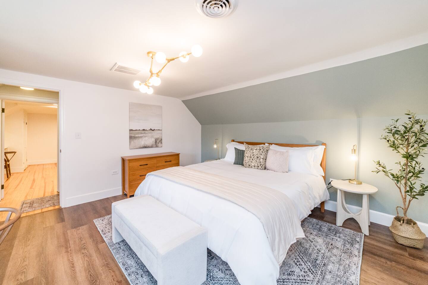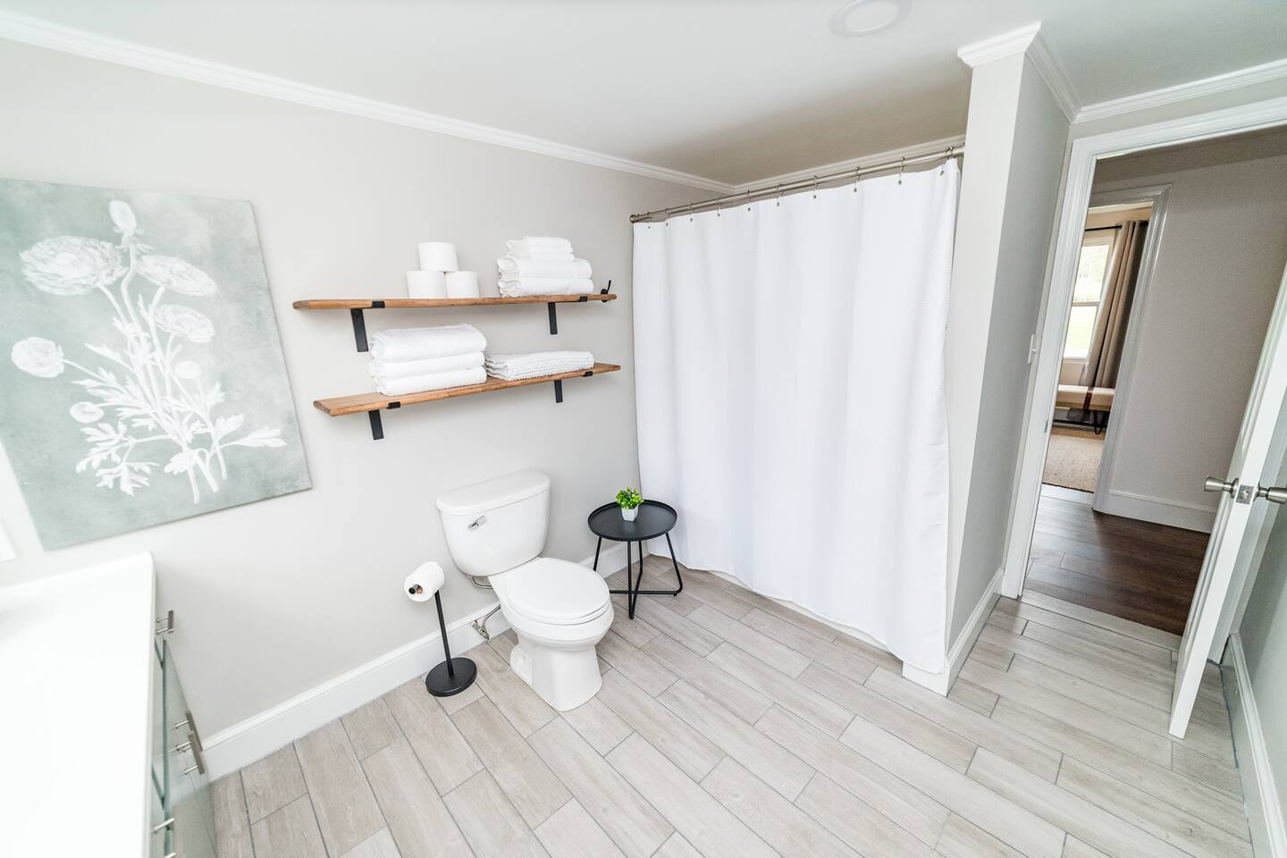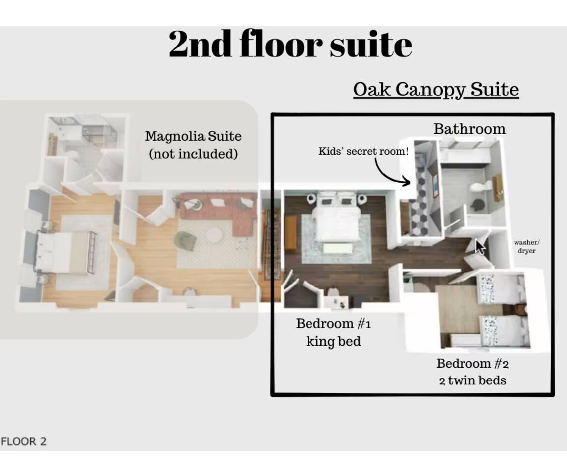 Welcome to the Oak Canopy Suite: one of 2 2nd floor private suites at Southern Guesthouse! Just as with any boutique inn, there is a common area for all guests, shared spaces like our dining room, hot tub and fire pit, but your suite will always be private. BEDROOM #1 -king bed -SmartTV -dresser -desk w/ mirror -closet -mini fridge + mini Keurig + microwave BEDROOM #2 -2 twin beds -toddler bed -dresser FULL BATHROOM -long vanity with sink -toilet -tub/shower combo LAUNDRY: hallway closet with washer and dryer *You may or may not see other guests on site in the following spaces: BACK PATIO -table & chairs -sitting chairs and benches -fire pit -hot tub *With this reservation, guests assume all liability and agree to follow all posted hot tub rules and safety precautions. CLIMATE CONTROL: This suite temperature is controlled by the main thermostat in the larger home + we include a rolling cart air conditioner and a space heater for you to adjust to your preferences. TV SERVICES: Roku TV streaming services (guests use personal login) PARKING: Paved parking spaces in front of the home CHECK IN/OUT: Check in is anytime between 4pm-10pm. Check out is 10am. *Linens and towels are provided. WHAT'S NEARBY: -Southern Granary Wedding Venue (2 min) -Walmart, groceries & restaurants (4 min) -English Park: walking & biking trails, playground and summertime Splash Pad for kids (6 min) -Liberty University's Snowflex Center (year-round skiing & tubing!): 25 min -Seaquest: 25 minutes -Thomas Jefferson's Poplar Forest: 30 min -Smith Mountain Lake: 40 minutes -Danville 45 min -Caesars Virginia 50 min -Hiking in the Blue Ridge Mountains: 50 min -Blue Ridge Parkway: 50 min -Natural Bridge: 1 hour -Virginia Safari Park: 1 hour *You must be over 25 years old to rent this home. {Southern Guesthouse can be rented as an entire 6 BD 4 BATH home OR in 3 individual, private suites during the week. All guests renting the suites enter through the main door, and each suite has an additional lock ensuring your privacy.}