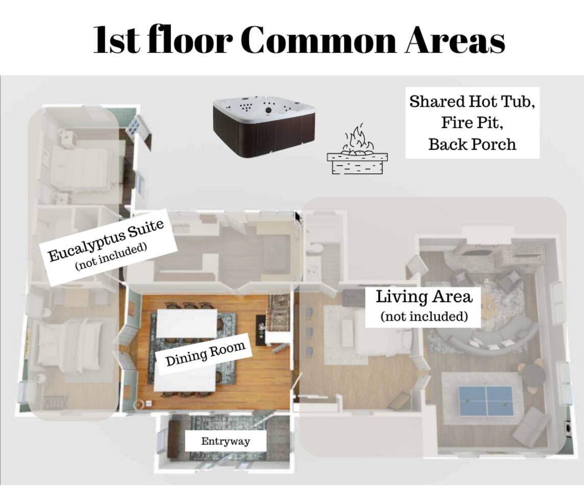 Guests will have access to their private upstairs suite, the main dining room, and all the outdoors amenities!) (yard, hot tub, outside seating, etc.)