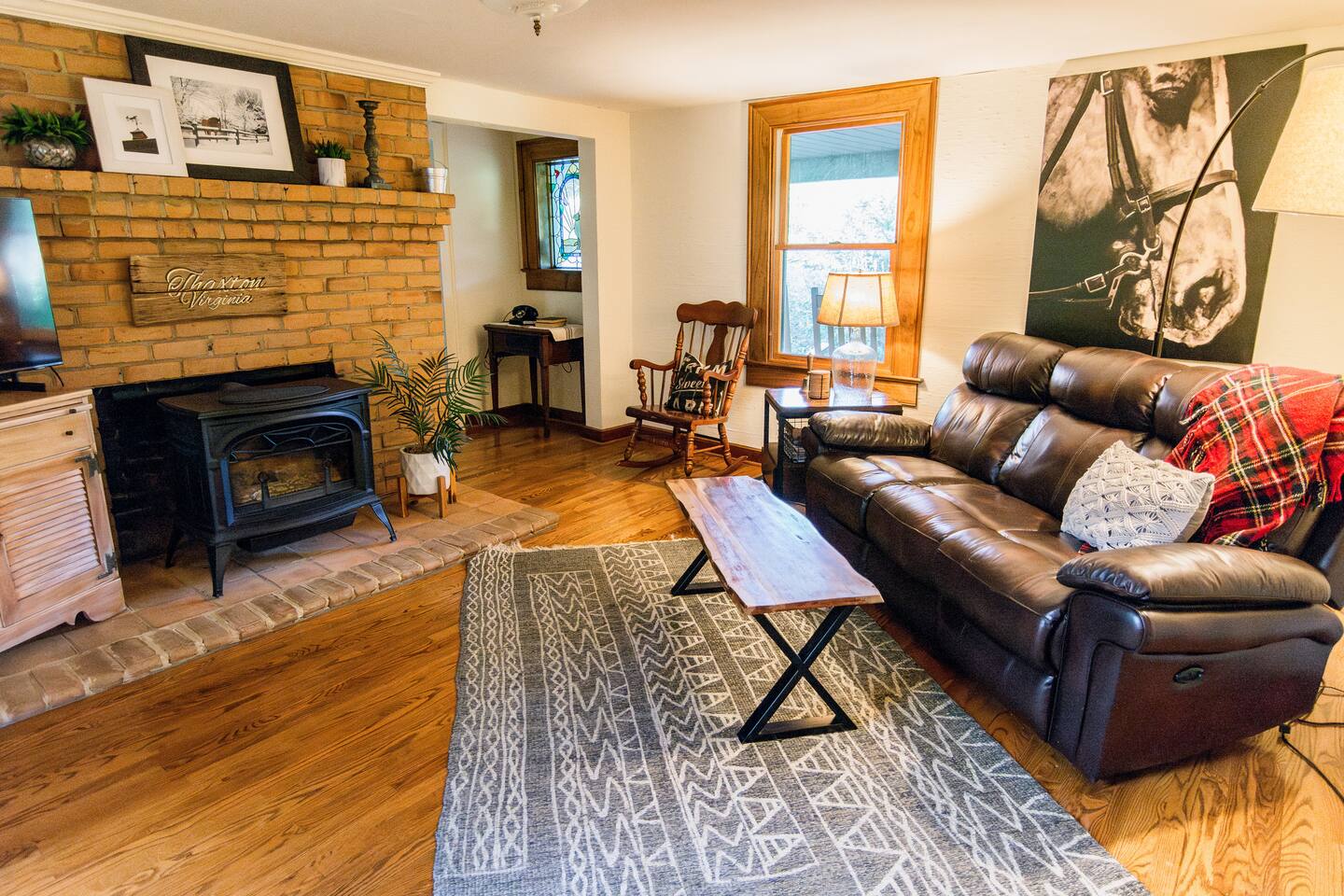 A quaint retreat in the country, the best of farm life, all without sacrificing any modern amenities. You’ll be welcomed with a basket of fresh farm eggs on the counter! **DOWNSTAIRS** KITCHEN -Keurig and a French press -dishwasher & all appliances -cooking necessities DINING ROOM -table seating for 6 FULL BATHROOM -shower, toilet, & sink LIVING ROOM -TV with basic channels, Chromecast, and a DVD player + large collection of DVD's PRIMARY BEDROOM & BATHROOM -comfortable king bed + closet -bathtub/shower combo, toilet, sink, large vanity, and 2 large closets **UPSTAIRS** BEDROOM #1: twin trundle bed, large desk area, small electric fireplace COMMON AREA -leather futon and electric fireplace BEDROOM #2 -queen bed with memory foam mattress OUTSIDE -4 rocking chairs on porch -hot tub for 4 -patio table for outdoor dining -gas fire pit -koi fish pond (The owners ask that guests please be attentive of children around the pond.) -horses, cows, and chickens in the pasture! Natural wildlife like deer, wild turkeys, and an occasional blue heron are known to visit the farm, too! Enjoy watching the animals but please do not feed or touch them. PARKING: The private entrance into the farm includes approximately a 1/4 mile of gravel roads. There is private parking in the back of the farmhouse for 2-3 vehicles. CLIMATE CONTROL: central heat and air There's lots to do and explore in the area, and this farmhouse is the perfect "home base" for your central Virginia vacation or getaway. We do not rent to guests under 25 and we do not allow outside visitors. Follow the printed instructions for the hot tub & hot tub cover use. Please be one of our stellar guests and leave the home as you found it!