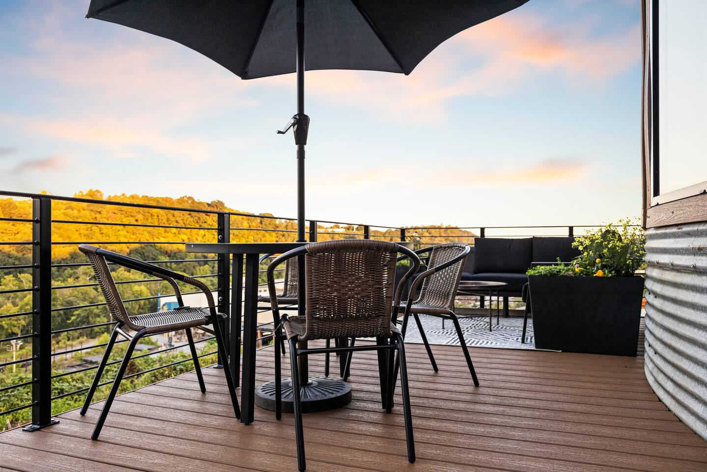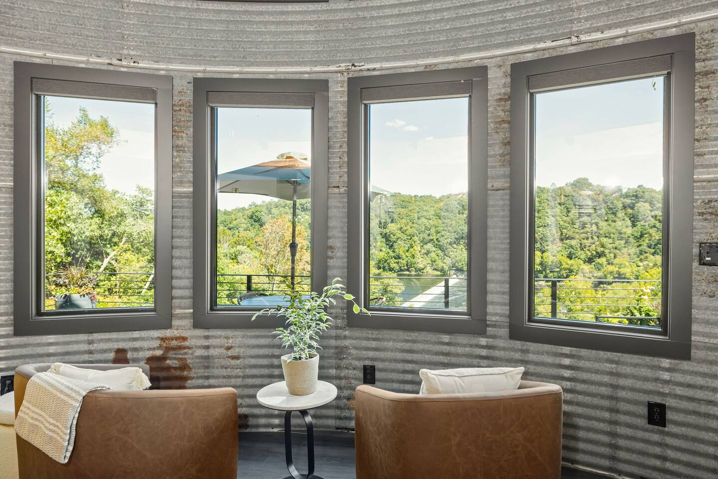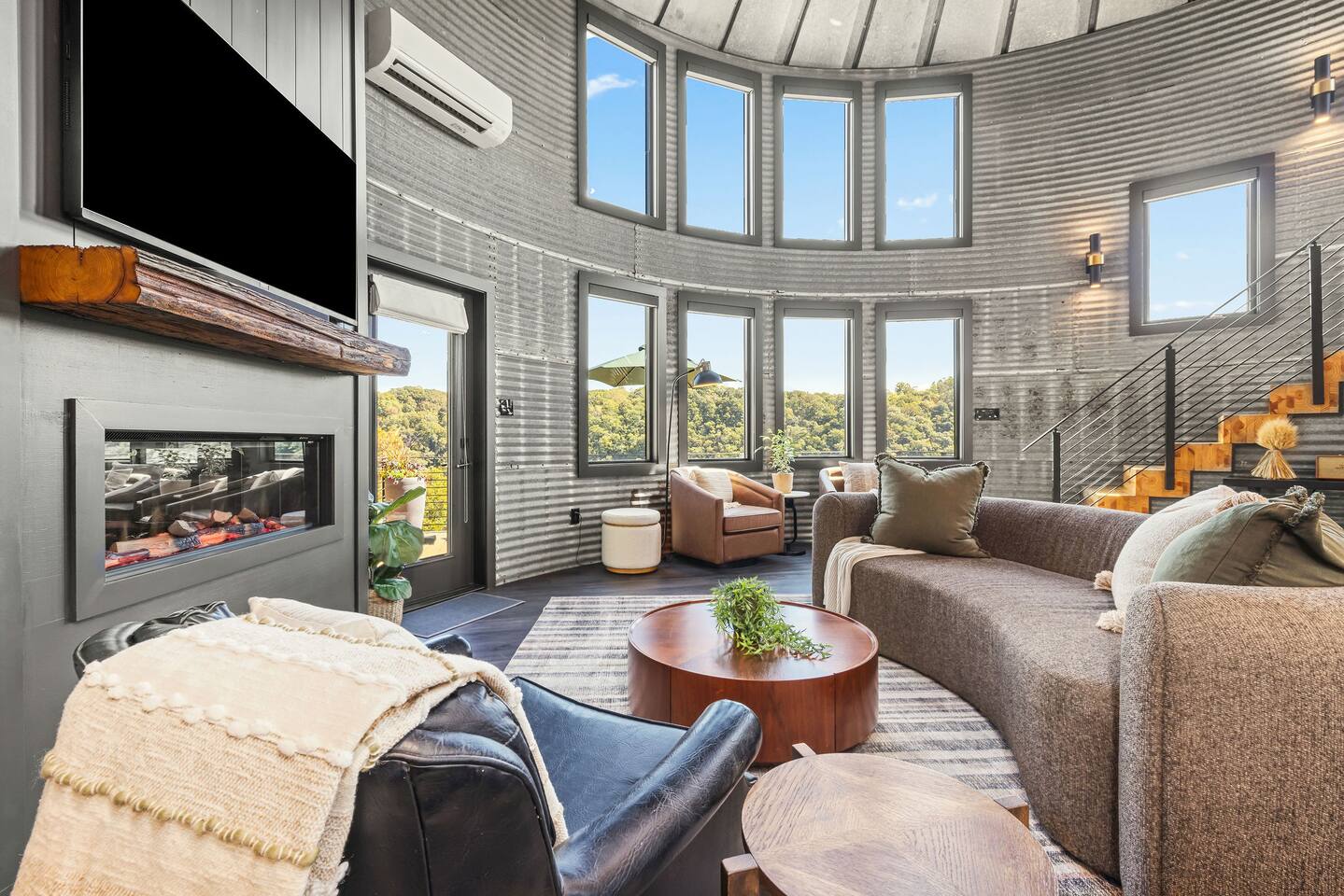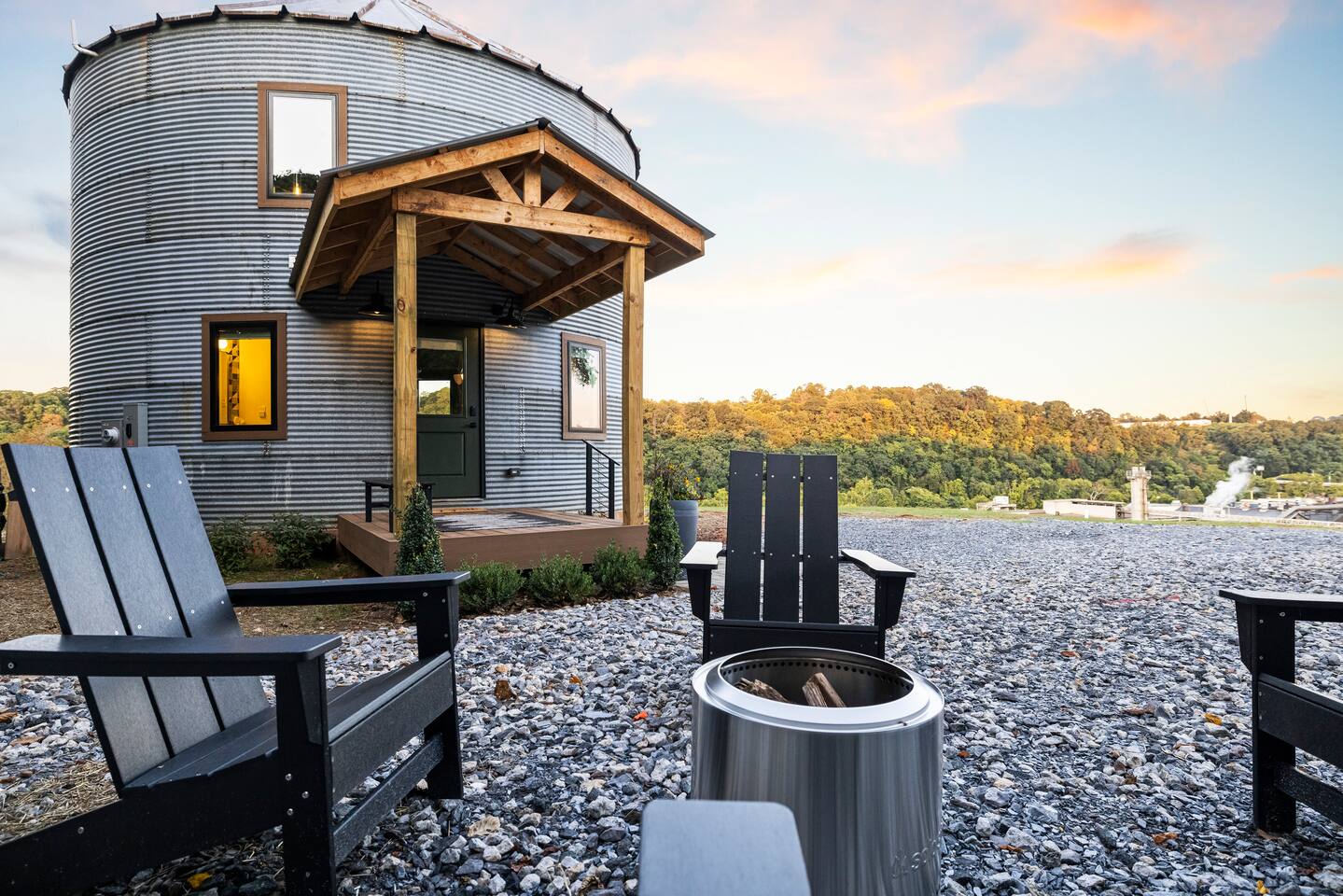 This can be a romantic getaway for couples, a fun friends meet up, or a family-friendly adventure with kids. It’s sure to be a unique experience you won't forget. Here's what you can expect at Silo on the James: **MAIN FLOOR** LIVING ROOM -Smart TV w/ streaming apps + Sonos sound -Electric fireplace w/ color-changing options -Pull-down queen-size Murphy bed -8 huge windows to take in the incredible views (with the click of a button, blackout shades will lower) -2 swivel chairs to look at the river -Bluetooth speaker, games, books KITCHEN -Full-size fridge, oven/stove, dishwasher, microwave -Keurig Duo, French press + local coffee -Pots/pans, dishes, & everything needed to cook meals -Quartz countertops w/ island for dining HALF BATHROOM **UPSTAIRS** BEDROOM LOFT -king bed -rollaway smart TV FULL BATHROOM -tile shower w/ faucet + hand-held attachment -Built-in bluetooth speaker w/ lighting -towels + hairdryer LAUNDRY ROOM -full size washer and dryer -iron + ironing board EXTERIOR -gas grill -back deck w/ outdoor dining table & lounging sectional -Solo stove fire pit + Adirondack chairs -pollinator garden CLIMATE CONTROL: A ductless heating and air unit with a remote + a huge, 8-ft fan controls the temperature. For extra coziness, you can turn on the fireplace with or without heat. PARKING: Up to 3 cars may park at the Silo (gravel driveway parking) TV Services: Smart TV (guests use personal login credentials) All towels & linens are provided for your stay. POTENTIAL FOR NOISE: You will hear the occasional sounds of trains going by, distant construction forklifts beeping, etc. The factory works through the night. Some nights can be noisier than others, and unfortunately this is out of our control. (Sunday nights and holidays tend to be the quietest as often the factory is off work!) Our family lives nearby and is not usually bothered by it, but we realize it's not for everyone, particularly if you're a light sleeper. The silo has sound-proofing insulation, and we provide a white noise machine and portable fan for your added comfort. *You must be 25 years or older to reserve Silo on the James. ADDITIONAL GUESTS: If you have more than 4 in your group wanting to stay, we also offer a train caboose, a 1 bedroom apartment AND a separate 5 bedroom home nearby that you may rent in coordination with your stay. Look up our listings (under Amy's profile), "River View Downtown Historic Apartment" or "Lighthearted Family Friendly Home near Downtown LYH". HOSTED BY: Silo on the James is a part of the Stay Different collection by All Belong Co, a local hospitality team dedicated to providing 5-star stays. SO MUCH TO DO NEARBY! Downtown restaurants, shopping, breweries: 3-5 min Walking nature trails: just a few blocks away at the end of the street! Amazement Square children's museum: 3 min Hill City AquaZoo: 13 min Liberty University: 15 min University of Lynchburg: 12 min Blue Ridge Parkway: 20 min Blue Ridge Mountain Hiking: 35-40 min Thomas Jefferson's Poplar Forest Home: 25 min Appomattox Court House: 30 min