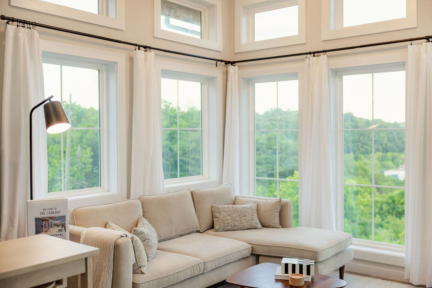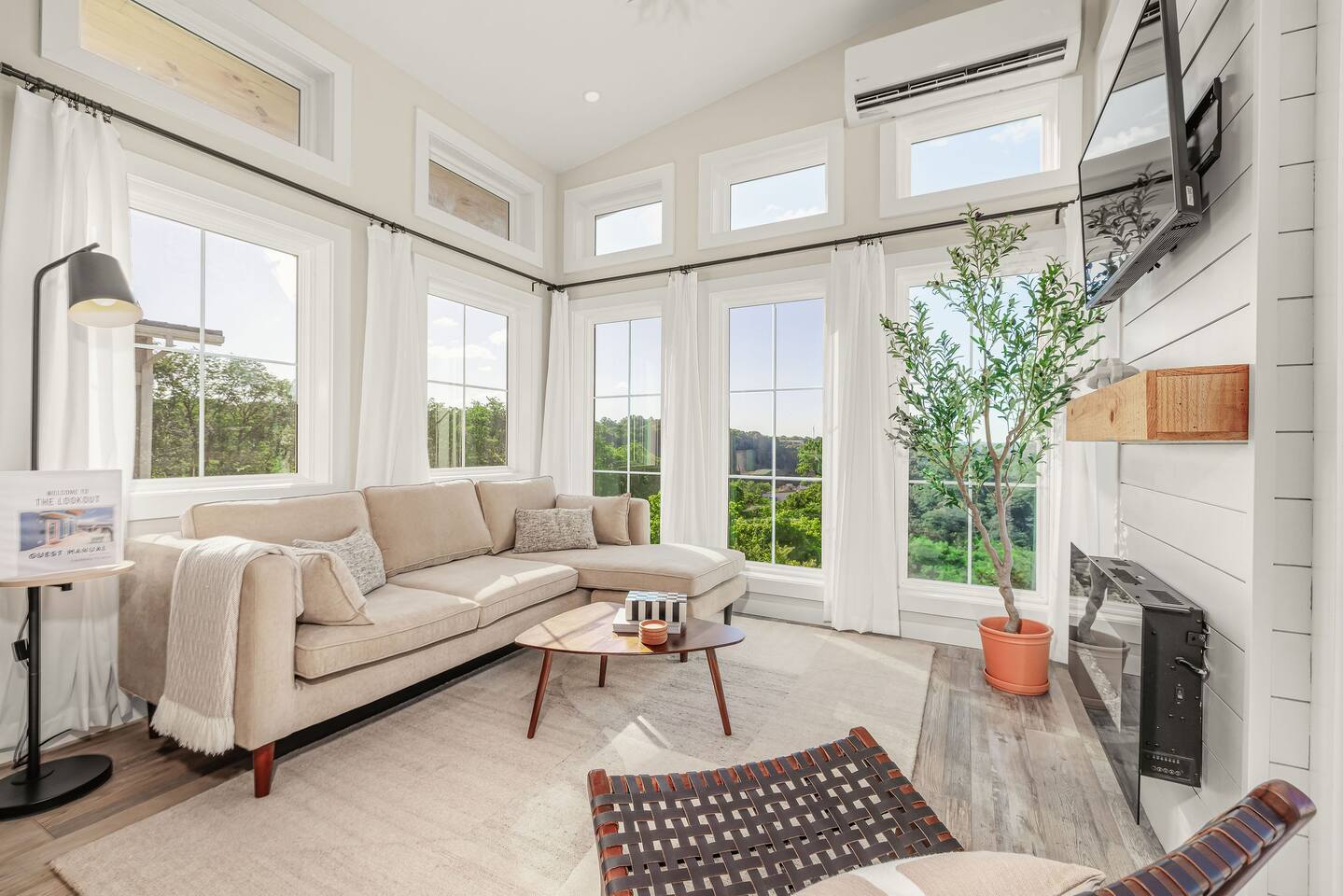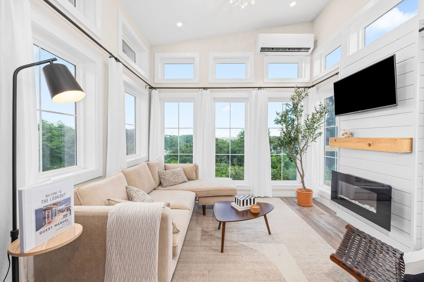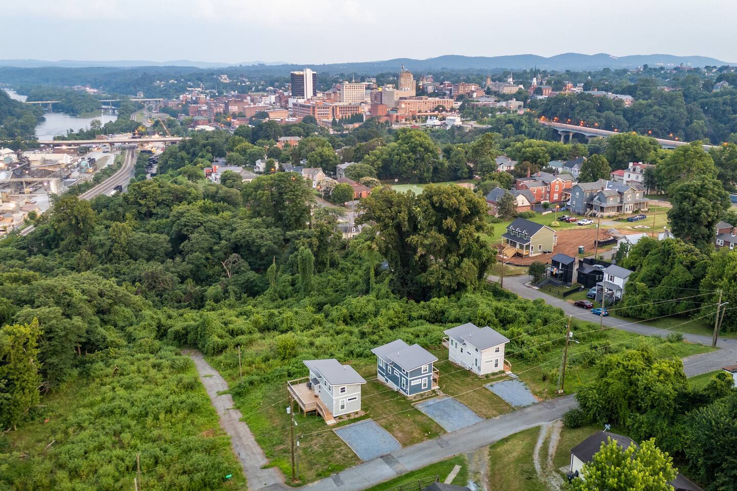 "By far the best Airbnb I've ever stayed in. Top tier!" "Far enough away from the city commotion but close enough to everything!" "The view is everything." "Great sleep!" Perched on a hill in a neighborhood of cool historic homes sits this brand new, modern home we call the Lookout. You'll love the views! Here's what you can expect at the Lookout: LIVING ROOM: -seating for 3-4 -electric fireplace -smart TV w/ streaming apps DINING AREA: -small dining table w/ 2 stools KITCHEN: -stainless appliances: fridge, microwave, oven/stove -stocked w/ dishes, pots/pans, glassware, etc. -Keurig and regular coffee pot DOWNSTAIRS BEDROOM: -queen bed (linens provided) FULL BATHROOM: -shower (shampoo, conditioner & body wash provided) -toilet -sink UPSTAIRS LOFT: (8 ft ceiling on one side of room and down to around 5 1/2 ft over the bed) -king bed -desk OUTSIDE DECK: -Adirondack chairs to take in the view -bistro table + 2 chairs PARKING: There's parking for 2 vehicles on a gravel driveway in front of the house. HEATING/AIR: -ductless mini split unit with remote STAIRS: The stairs to the loft are steep and without backs, so we urge guests to use caution. Anyone with mobility issues should use the downstairs queen bedroom. SO MUCH TO DO NEARBY! Downtown Restaurants, Shopping, Breweries: 3-5 min (15-20 min walk) Walking/Biking Nature Trails: at the bottom of the hill (15 min walk or you can park and walk!) Amazement Square Children's Museum: 5 min James River: 5 min AquaZoo: 13 min Liberty University: 15 min University of Lynchburg: 10 min Blue Ridge Parkway 20 min Blue Ridge Mountain Hiking 35-40 min Thomas Jefferson's Poplar Forest 25 min Appomattox Court House: 30 min *We do not rent to anyone under the age of 25. You'll have use of the entire home! HOSTED BY: The Lookout is proudly hosted by All Belong Co, a local team dedicated to providing 5 star stays. We'll take good care of you! *Just a heads' up for the warm season: While we have regular pest control, please note you're around nature. If seeing bugs outside would cause you to give us less than 5 stars, maybe we were not the best fit.