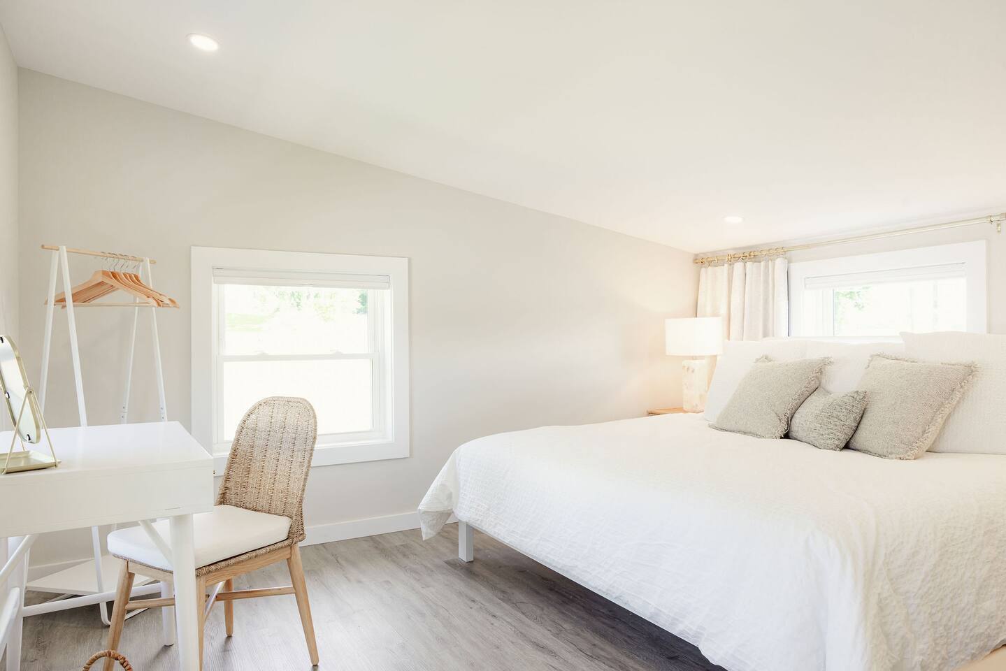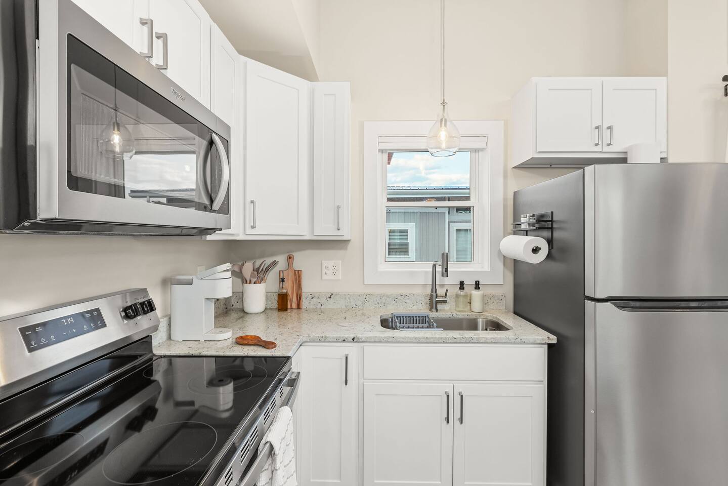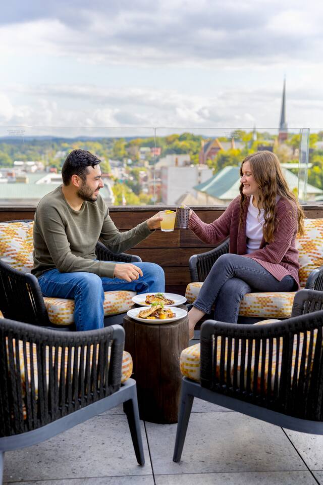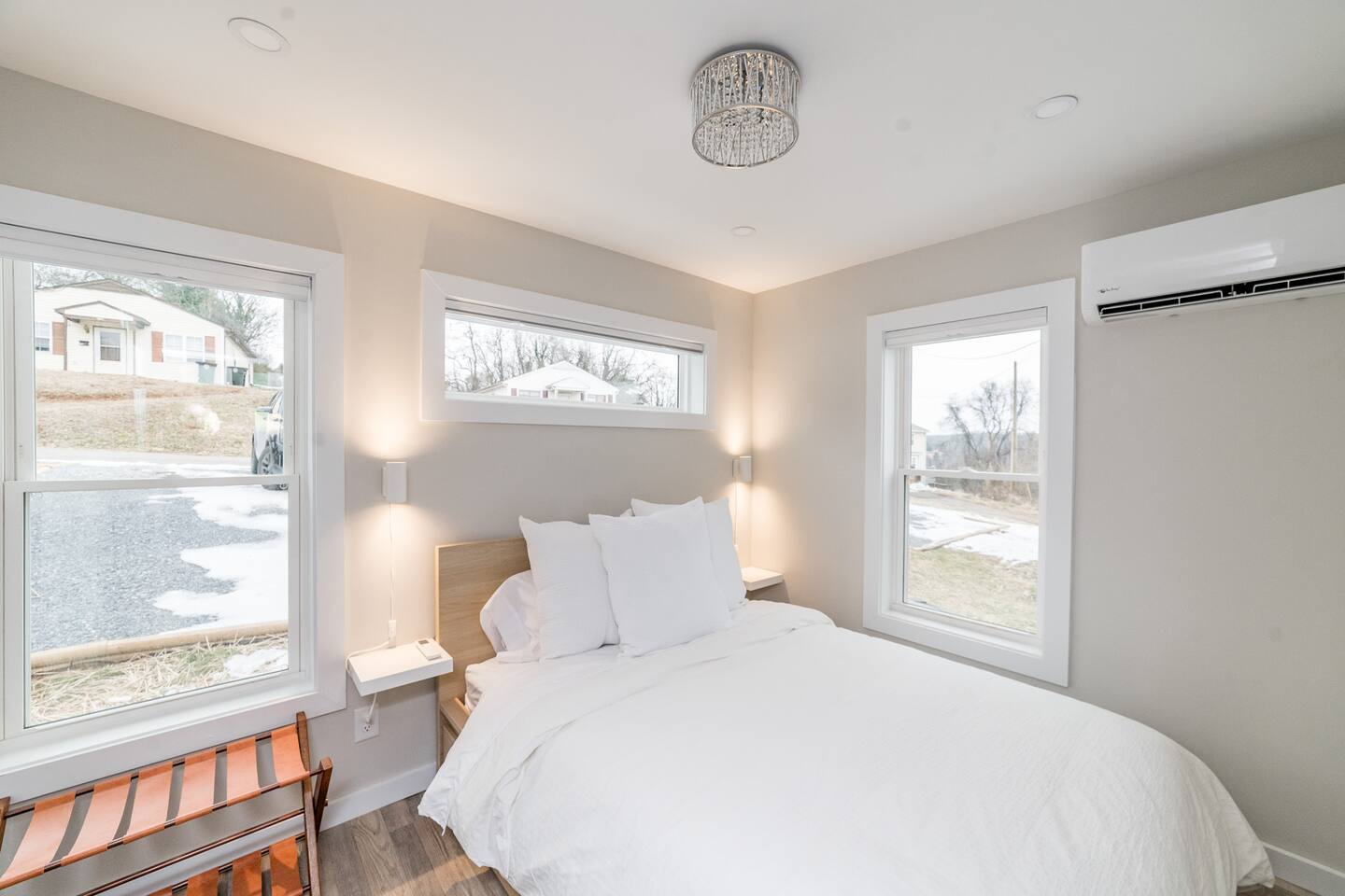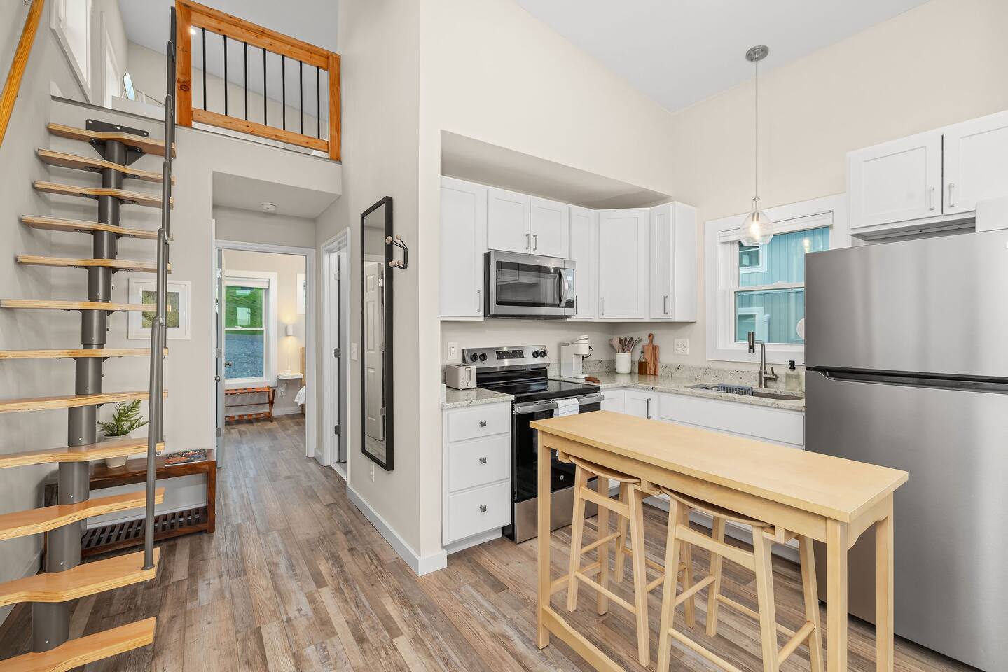 "By far the best Airbnb I've ever stayed in. Top tier!" "Far enough away from the city commotion but close enough to everything!" "The view is everything." "Great sleep!" Perched on a hill in a neighborhood of cool historic homes sits this brand new, modern home we call the Lookout. You'll love the views! Here's what you can expect at the Lookout: LIVING ROOM: -seating for 3-4 -electric fireplace -smart TV w/ streaming apps DINING AREA: -small dining table w/ 2 stools KITCHEN: -stainless appliances: fridge, microwave, oven/stove -stocked w/ dishes, pots/pans, glassware, etc. -Keurig and regular coffee pot DOWNSTAIRS BEDROOM: -queen bed (linens provided) FULL BATHROOM: -shower (shampoo, conditioner & body wash provided) -toilet -sink UPSTAIRS LOFT: (8 ft ceiling on one side of room and down to around 5 1/2 ft over the bed) -king bed -desk OUTSIDE DECK: -Adirondack chairs to take in the view -bistro table + 2 chairs PARKING: There's parking for 2 vehicles on a gravel driveway in front of the house. HEATING/AIR: -ductless mini split unit with remote STAIRS: The stairs to the loft are steep and without backs, so we urge guests to use caution. Anyone with mobility issues should use the downstairs queen bedroom. SO MUCH TO DO NEARBY! Downtown Restaurants, Shopping, Breweries: 3-5 min (15-20 min walk) Walking/Biking Nature Trails: at the bottom of the hill (15 min walk or you can park and walk!) Amazement Square Children's Museum: 5 min James River: 5 min AquaZoo: 13 min Liberty University: 15 min University of Lynchburg: 10 min Blue Ridge Parkway 20 min Blue Ridge Mountain Hiking 35-40 min Thomas Jefferson's Poplar Forest 25 min Appomattox Court House: 30 min *We do not rent to anyone under the age of 25. You'll have use of the entire home! HOSTED BY: The Lookout is proudly hosted by All Belong Co, a local team dedicated to providing 5 star stays. We'll take good care of you! *Just a heads' up for the warm season: While we have regular pest control, please note you're around nature. If seeing bugs outside would cause you to give us less than 5 stars, maybe we were not the best fit.