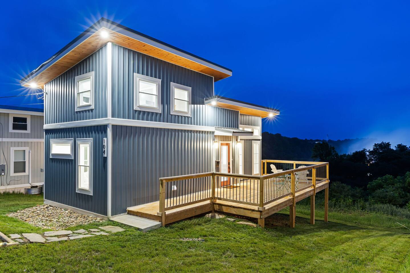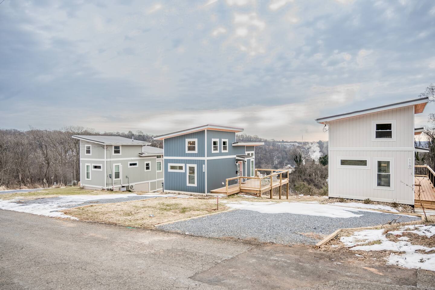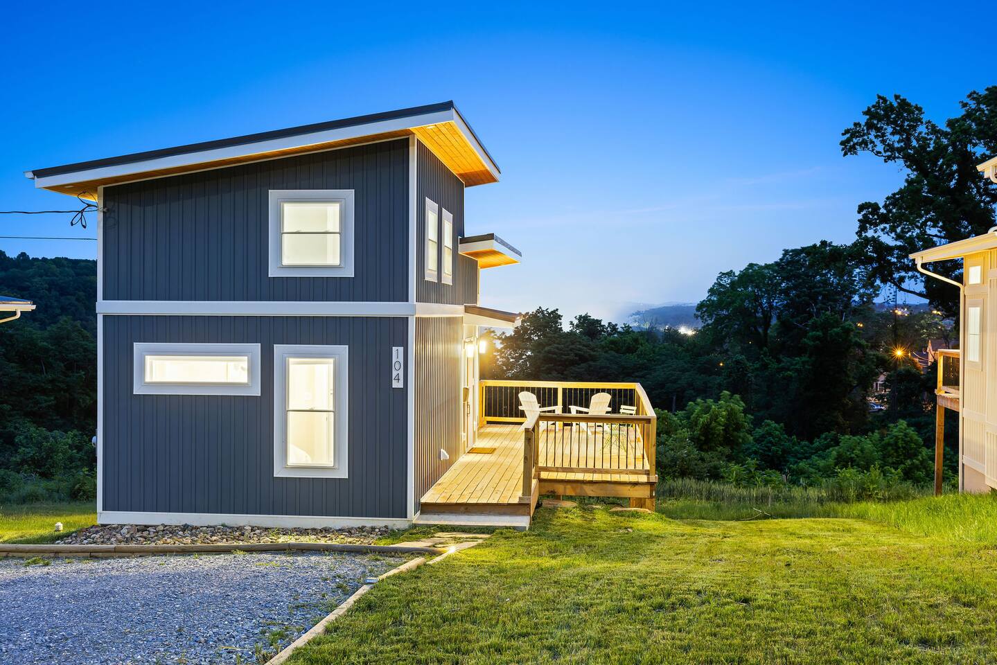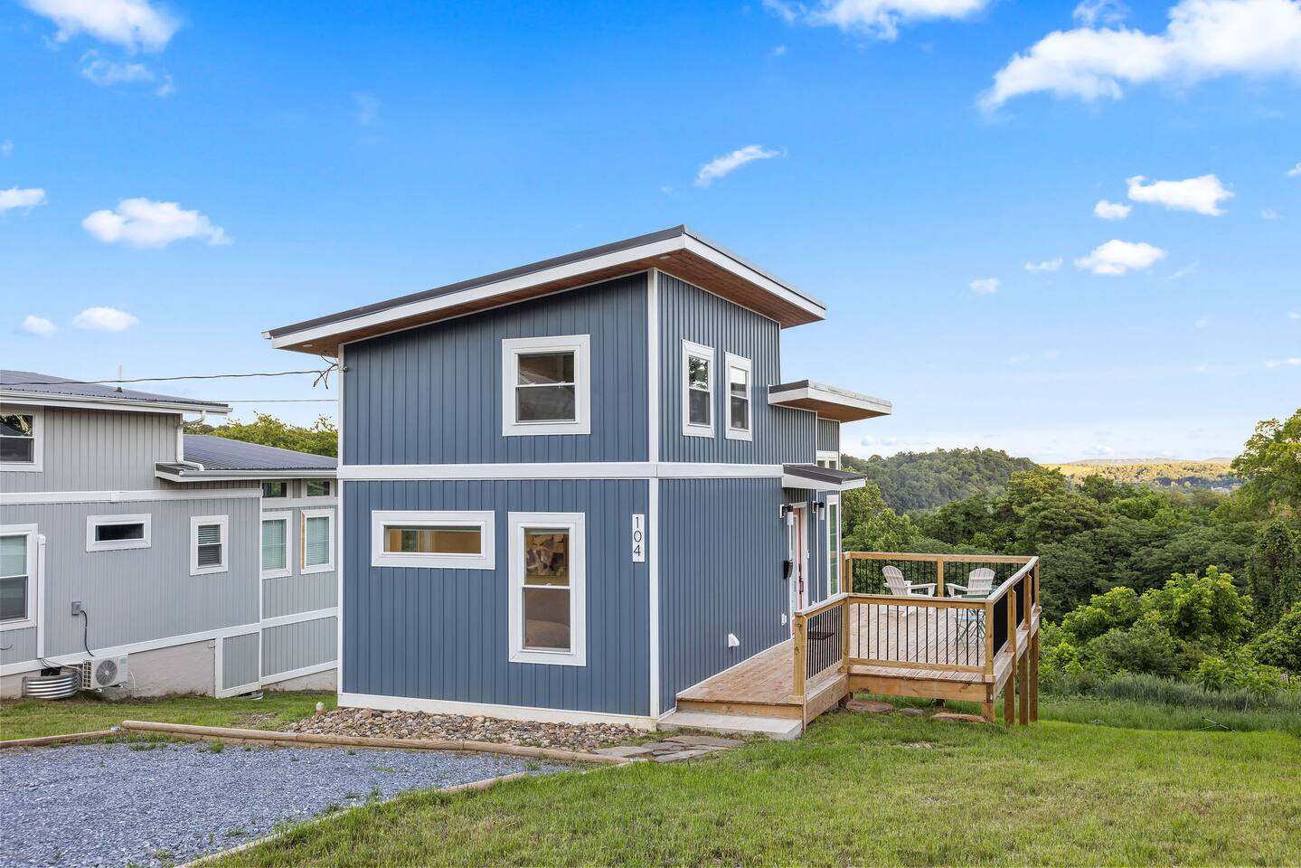 Modern designer house 3 min to Downtown atop a cool, historic neighborhood. -Beautiful distant views of downtown, nature + James river -Large deck, smart TV, desk, fast wifi, stocked kitchen -Plenty of ceiling height in the loft bedroom -15 min walk to downtown + miles of nature trails -12 min to Liberty Univ & Univ of Lynchburg -Perfect for couples getaways, single travelers, small families, or extended stays!