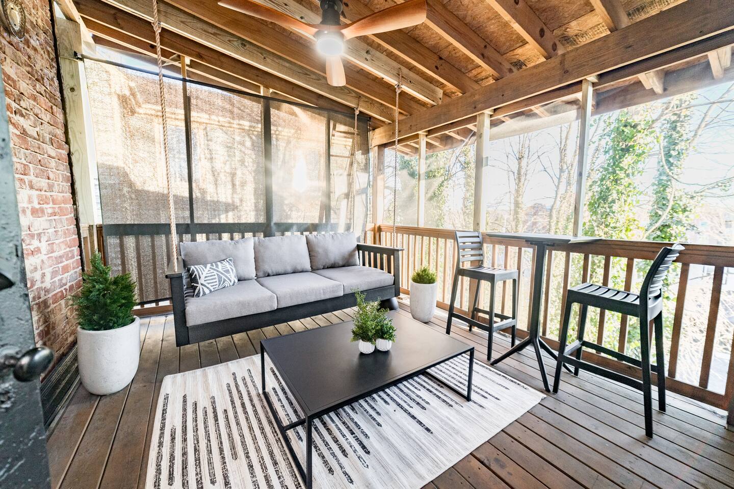 Grand + spacious historic home in Downtown Lynchburg! -Across the street from donut shop, mexican restaurant & vintage clothing store -Screened porch, hanging daybed, fast wifi, 11 ft ceilings -Walk to downtown restaurants + breweries -15 min to Liberty University, 10 min to Univ of Lynchburg, 5 min to hospitals -MLK Art Collection + amenities from local black-owned businesses -% of profits support local organizations that fight poverty and racism -Inquire about small gatherings or events.
