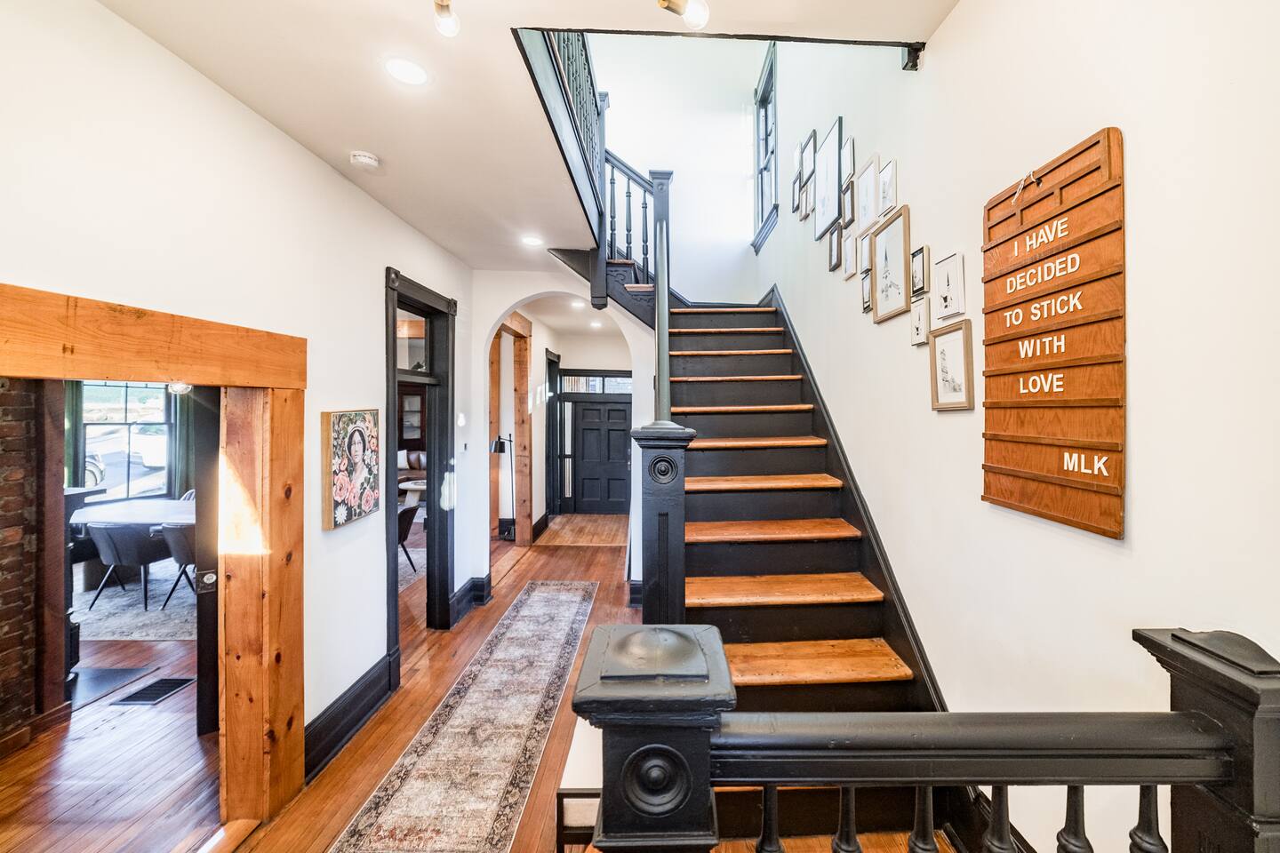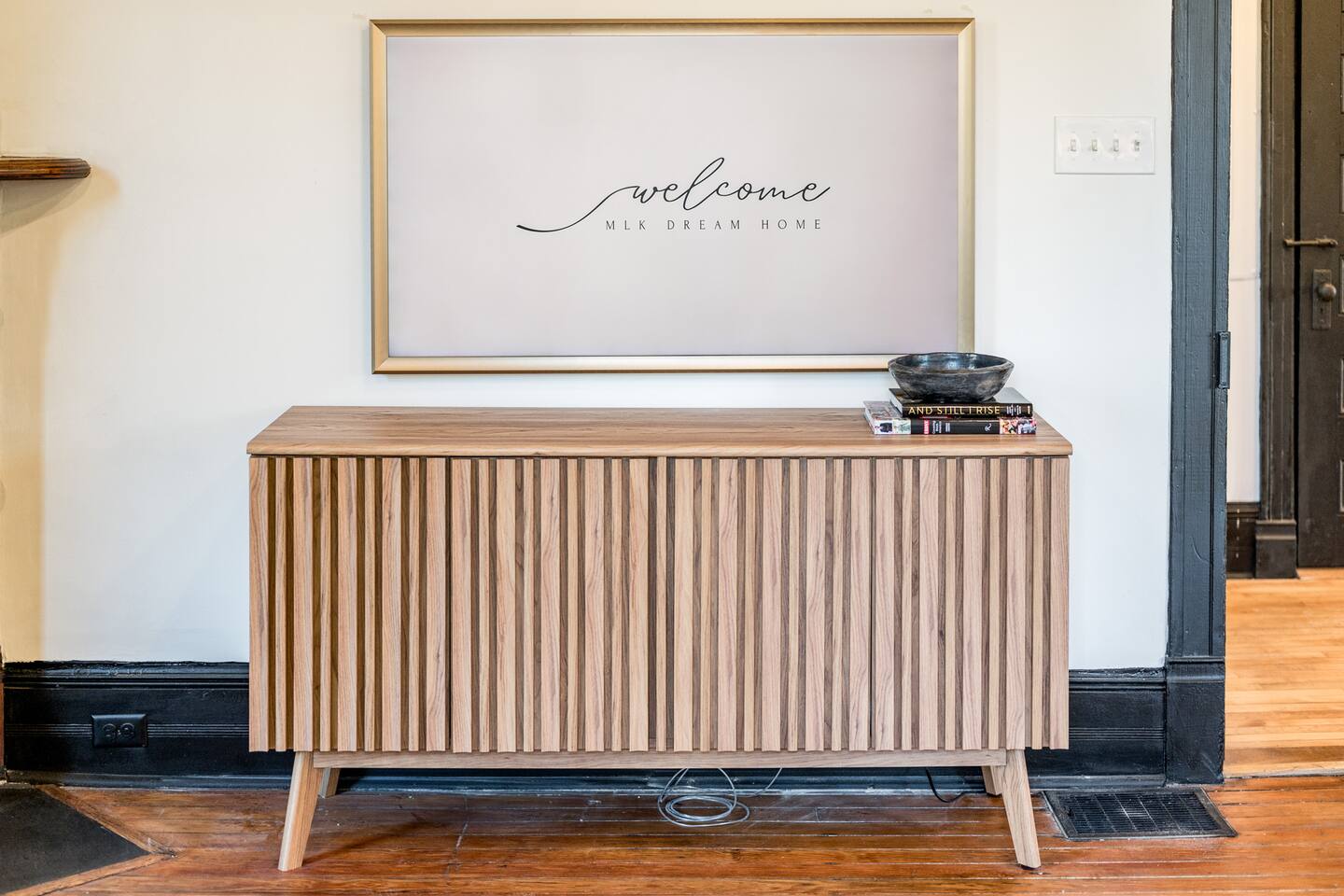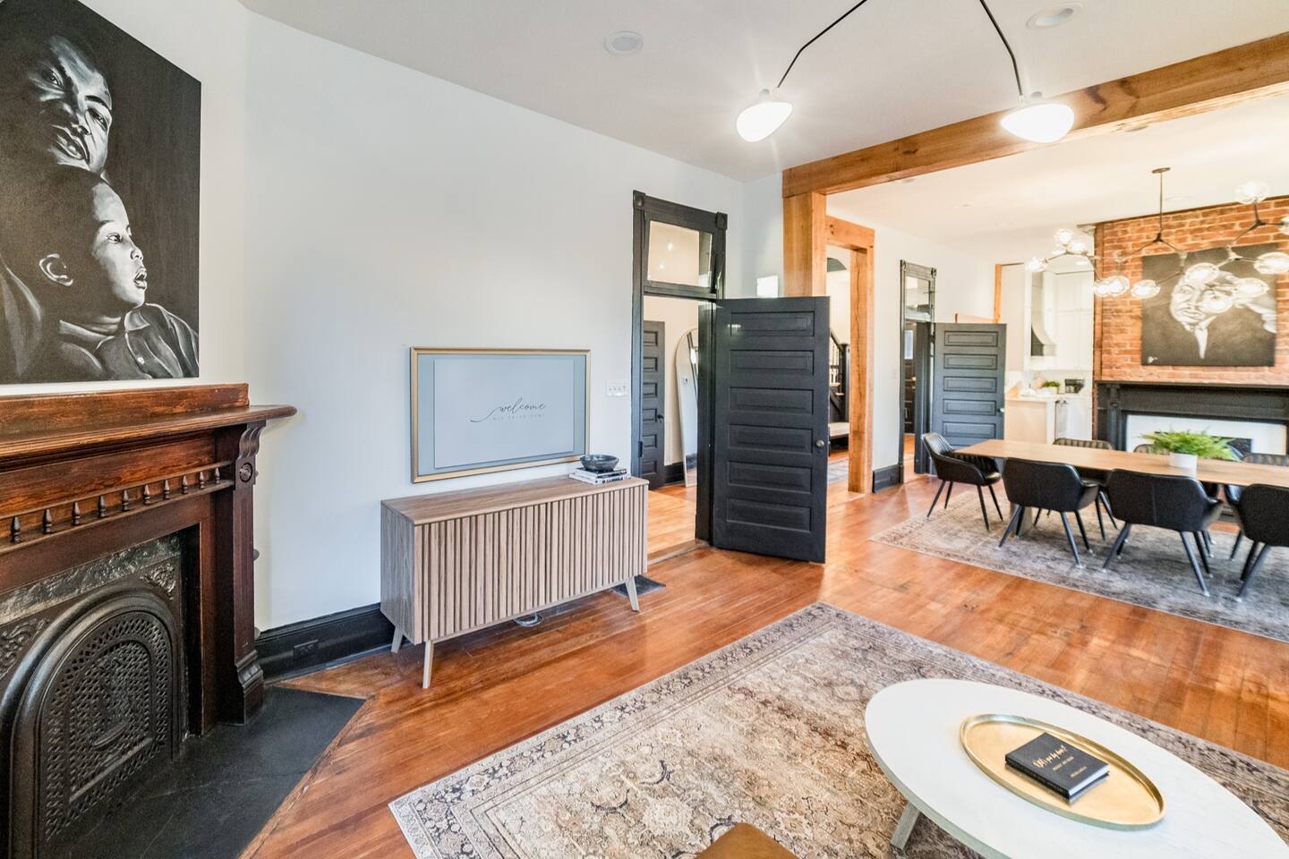There's nothing like this grand, historic and unique home to welcome you to charming downtown Lynchburg! Here’s what you can expect at the MLK Dream Home: **MAIN FLOOR** LIVING ROOM -leather sectional + swivel chair -55" frame TV with streaming options DINING ROOM -large table seating 10 KITCHEN -stainless appliances (fridge, dishwasher, microwave, stove/oven) -island with seating for 4 -quartz countertops -fully stocked! (pots/pans, dishes, blender, etc.) DOWNSTAIRS FULL BATH -oversized tile shower w/ rain-head -sink + toilet -towels DOWNSTAIRS PORCH -outdoor dining for 8 **UPSTAIRS** BEDROOM #1 -king canopy bed -smart TV, ceiling fan -private temperature control -dresser + closet -blackout curtains + sound machine BEDROOM #2 -king bed + twin daybed -private temperature control -dresser in closet -blackout curtains + sound machine BEDROOM #3 -king bed -smart TV, ceiling fan -private temperature control -desk -corner closet -blackout curtains + sound machine LANDING -twin bed daybed -reading chair w/ books surrounding the topics of poverty and race (including children's books to help teach about black history on their level) FULL BATH -clawfoot tub + shower -Bluetooth speaker -toilet + sink -towels SCREENED-IN PORCH -hanging daybed couch -bistro table for 2 CLIMATE CONTROL The downstairs temperature is controlled by central heat and air, and each of the upstairs bedrooms and hallway have their own ductless mini-split with remote for guests to control their desired temperature! PARKING Free street parking is available along the side of the home for approx 4-5 vehicles. TV Smart TV streaming services (ready for your own personal logins) OTHER IMPORTANT INFO All linens are provided. No pets allowed. (while we love fur babies, we are firm on this policy) We do not rent to anyone under 25. Renting this home for meetings & small gatherings is allowed under a separate fee structure from our overnight guest stays. Please contact All Belong Co for inquiries to be considered. WHAT’S NEARBY -Hill City Donuts, Uno Mas Mexican restaurant, and vintage clothing shop (across the street!) -Academy Center of the Arts (2 blocks) -basketball courts (next door) -walking nature trails (5 min walk) -breweries, shops & more downtown restaurants (5-10 min walk) -Virginian Hotel (5 minute walk) -historic church steeples (2-10 minute walk) -Amazement Square children’s museum (3 min drive) -Legacy Museum of African American History (2 min drive) -Lynchburg Museum (2 min drive) -Liberty University (12-15 min) -University of Lynchburg (10 min) -AquaZoo Lynchburg (12 min) -Snowflex (12 min) AREA DAY TRIPS Blue Ridge Parkway: 20 min Blue Ridge Mountain hiking: 35-40 min Thomas Jefferson’s Poplar Forest home: 25 min Appomattox Courthouse: 30 min Natural Bridge: 48 min HOSTED BY: the MLK Dream Home is hosted by All Belong Co, a local team dedicated to providing 5-star stays. We'll take good care of you! *You can view this listing later by clicking the heart in the top right corner. _____________________________ Why an Airbnb that honors the legacy of Martin Luther King Jr? There's so many reasons (read below!) but ultimately, without his achievements, our own family wouldn’t exist. So we've collaborated with black artists and creatives in order to bring this historic home on downtown Lynchburg's MLK Boulevard to our community. Here's a few more reasons: 1. His impact was inspiring in founding our hosting business "All Belong" 2. MLK himself walked this street and even stayed overnight just a few blocks away! 3. The street used to be known as black Main Street and is named after him. 4. Our son is black and that matters. 5. To highlight black excellence 6. To support black-owned businesses (you'll find their products and art throughout the home!) 7. To tell the story that hatred doesn’t win 8. To inspire others to dream BIG 9. To educate, inspire, challenge, and build bridges 10. To give financially to local non-profits that fight poverty and racism 11. His message of love, peace, and unity is what we all need to hear right now. 12. To welcome ALL Sleep somewhere worth talking about.