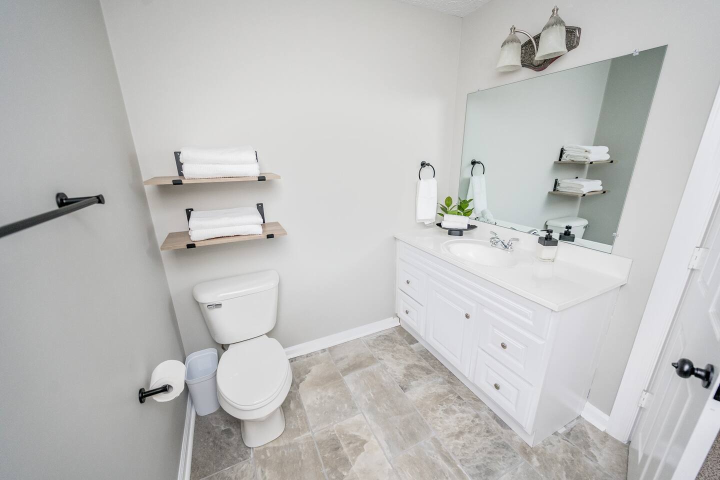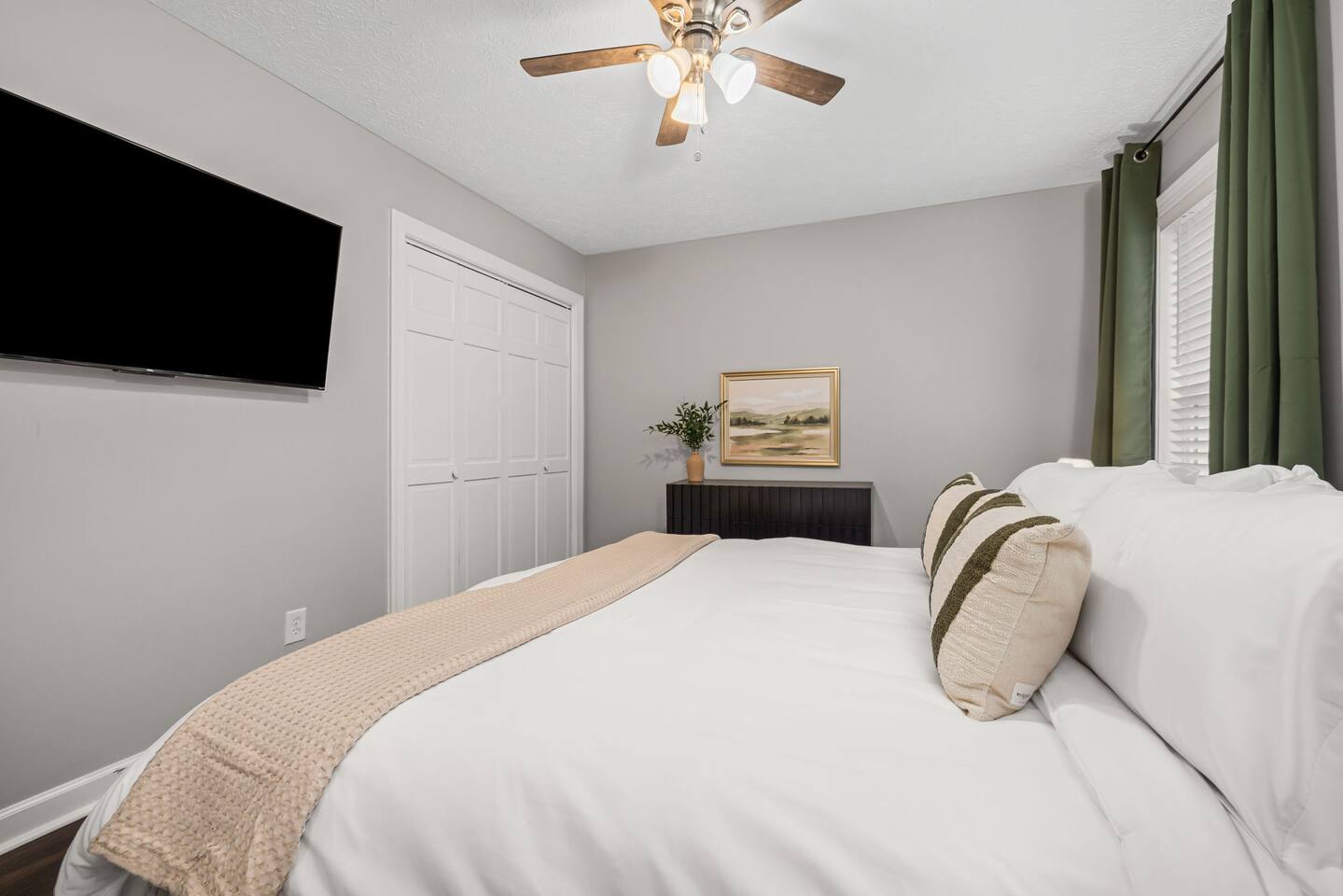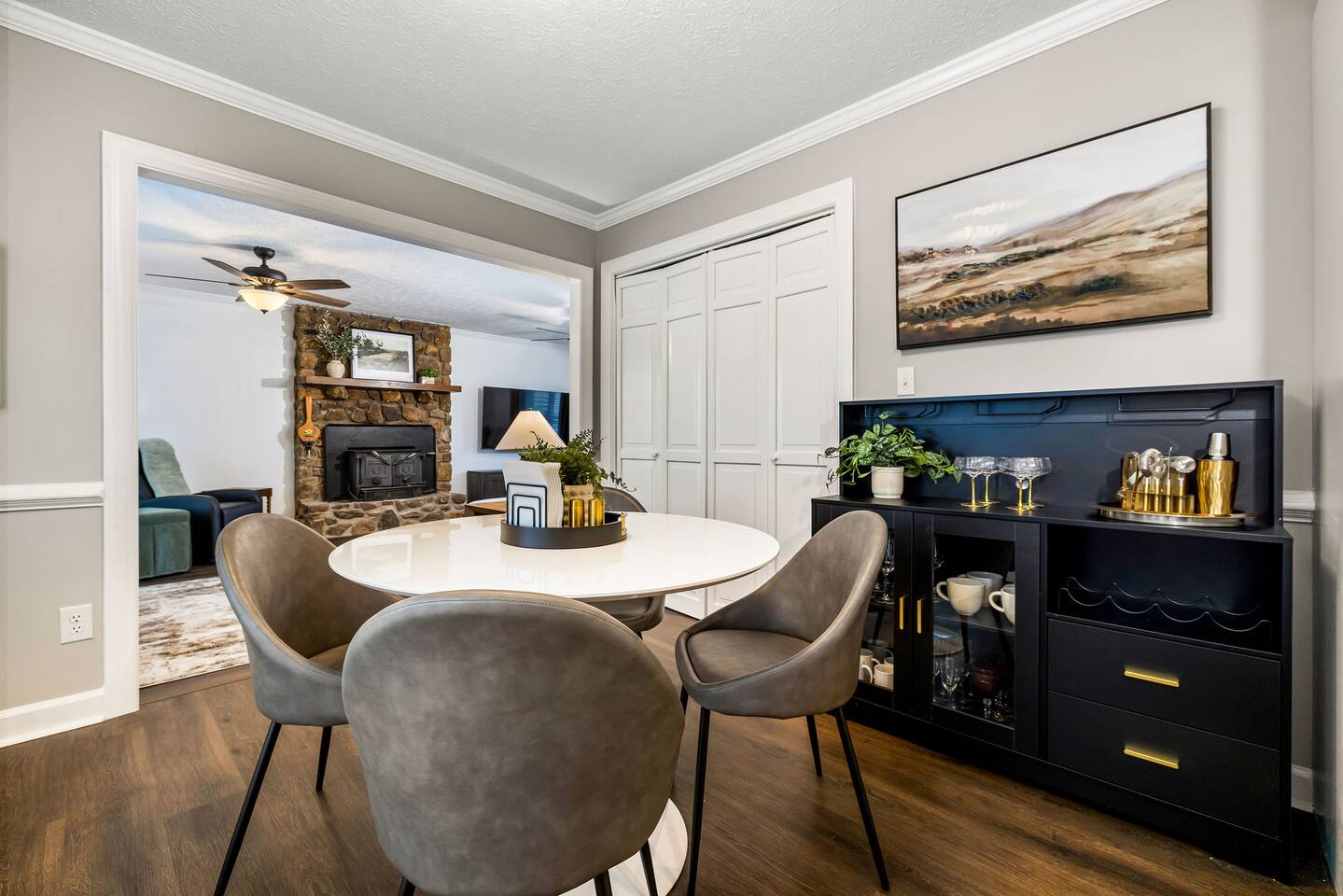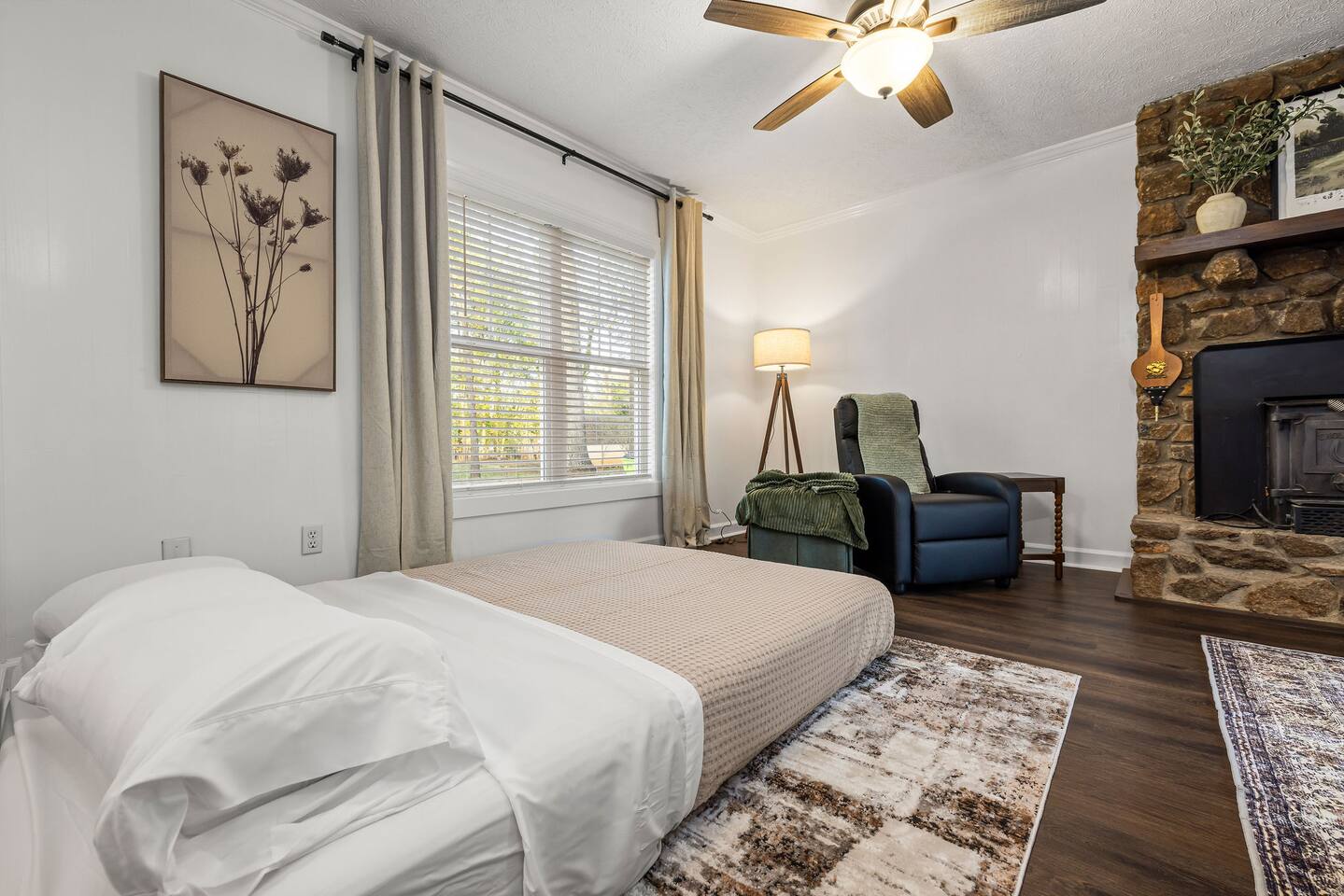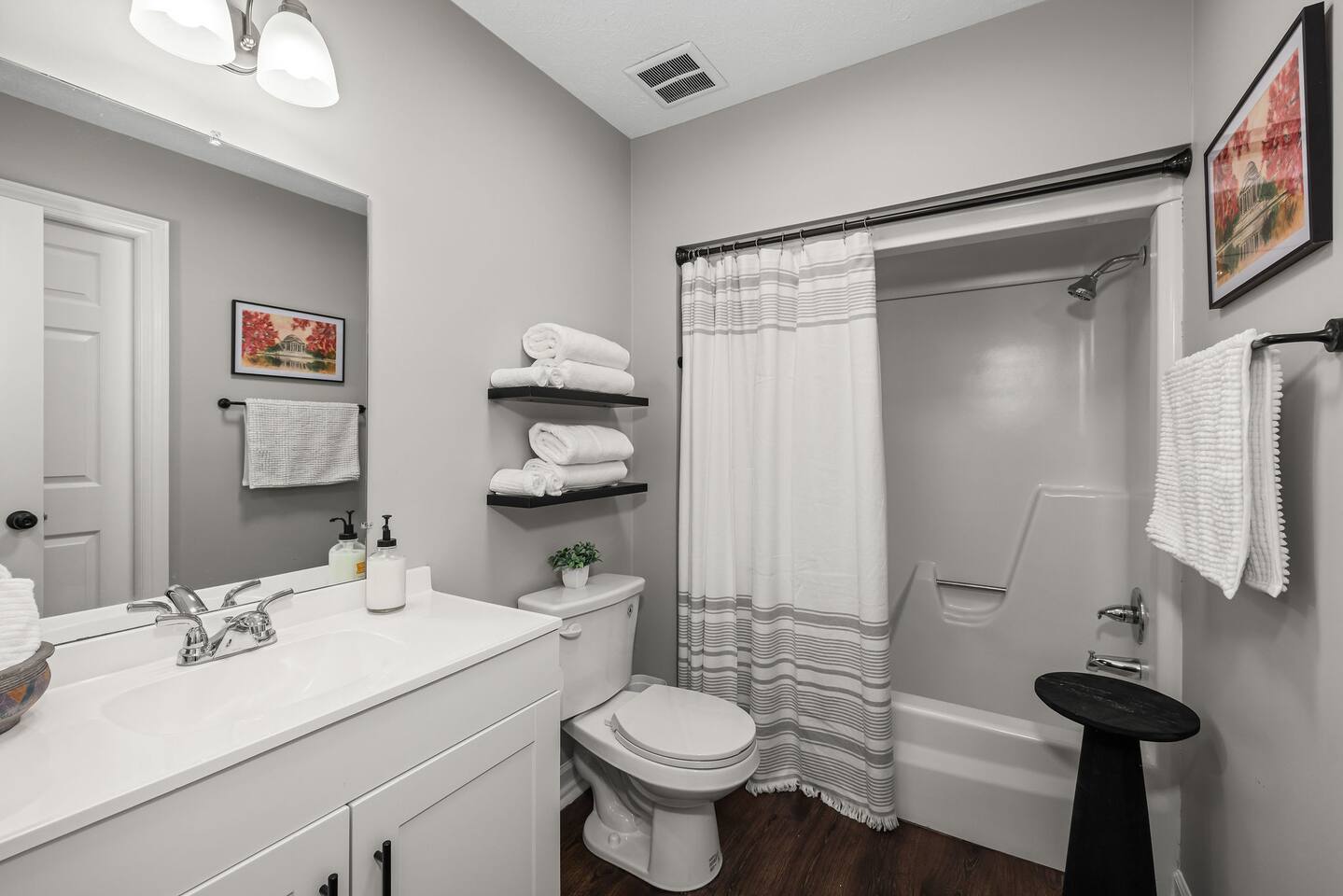 Sometimes it's hard to scroll through hundreds of listings and know which one will give you a clean, comfortable place with everything you need. This home is perfect if you like the idea of: -a quiet and convenient place close to great scenery & a historic town -a family-friendly place where you can spread out -"extras" like a movie theater and a gameroom -learning some Virginia history and enjoying nearby walking trails -your baby having their own nursery with a crib So let's give you a rundown of what you can expect at the Jefferson. (Fun fact: this house is named the Jefferson because it's only a few blocks from Thomas Jefferson's summer home, Poplar Forest! There's lots of paved walking trails and it's a PERFECT spot for golden hour photos!) **MAIN FLOOR** KITCHEN -stainless fridge, oven/range, microwave, dishwasher -Keurig + regular coffee pot & tea kettle -pots/pans, dishware, glasses, & everything you need to make meals! -breakfast table for 4 DINING ROOM -table for 8 LIVING ROOM #1 -sectional -small reclining massage chair! -chaise lounge that can convert into a queen sleeping mattress -65" Smart TV w/ Netflix and other streaming apps (sorry, no use of fireplace) LIVING ROOM #2 -couch + chairs -desk PRIMARY BEDROOM -king bed + smart TV -dresser -closet -access to bathroom FULL BATH (opens both from hallway AND the primary bedroom) -toilet -shower/tub combo -towels & washcloths -shampoo, conditioner, body wash -hair dryer LAUNDRY ROOM -washer & dryer available for your use **UPSTAIRS** BEDROOM #2 -king bed -dresser -large walk-in closet w/ window -desk & chair BEDROOM #3 -2 twin beds -window seat -dresser -large walk-in closet w/ window MOVIE ROOM: -65" smart TV -surround sound system -modular sofa so you can reconfigure how you like it for movie night! BEDROOM #4 (PRIVATE NURSERY) -crib -comfortable chair for nursing or rocking -a few bedtime stories about Virginia HALLWAY FULL BATHROOM -shower/tub combo -sink, toilet -towels & washcloths -shampoo, conditioner, body wash, hair dryer CLIMATE CONTROL: The house is heated and cooled by central heat and air. PARKING: There is off-street parking in the driveway for a maximum of 3-4 cars. **OUTSIDE** BACK DECK: outdoor table and chairs for 8, level yard (we re-seeded in April so it'll take a little time for the grass to grow in), gas grill GARAGE GAME ROOM!: air hockey, basketball arcade game, corn hole, ring game, seating area, pub table, bluetooth speaker CHECK IN: Guests check in at their own convenience between 4pm - 10pm with a personalized code. *You must be over the age of 25 to rent this home.* Linens and towels provided. SO MUCH TO DO NEARBY: Thomas Jefferson's Poplar Forest: 2 min Walking trails: 2 min Groceries: 5 min (Kroger) Restaurants: 5 min (steakhouse, fast food, mexican food, pizza, and more!) Liberty University: 14 min University of Lynchburg: 19 min Historic Downtown LYH: 20 min Shopping (Target, mall, etc.): 15 min Hill City AquaZoo: 19 min Snowflex (year-round skiing and tubing): 15 min Appomattox Courthouse: 35 min Hiking at Sharp Top Mountain: 40 min Popular day trips include: hiking in the Blue Ridge Mountains, driving the scenic Blue Ridge Parkway, Natural Bridge, Virginia Safari Park, D-Day Memorial and Smith Mountain Lake. HOSTED BY: The Jefferson is hosted by All Belong Co, a boutique hospitality team dedicated to providing 5 star stays.