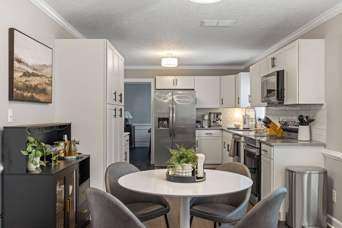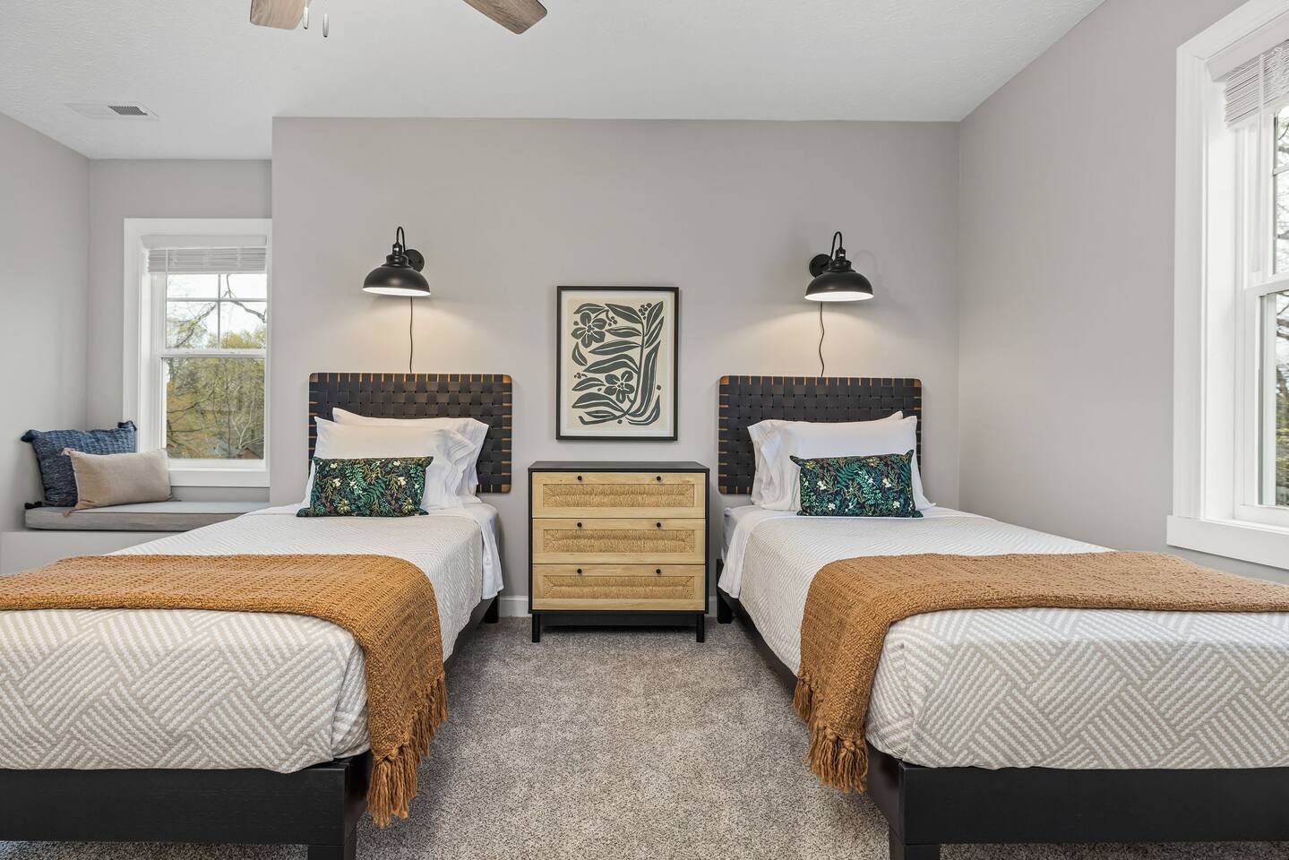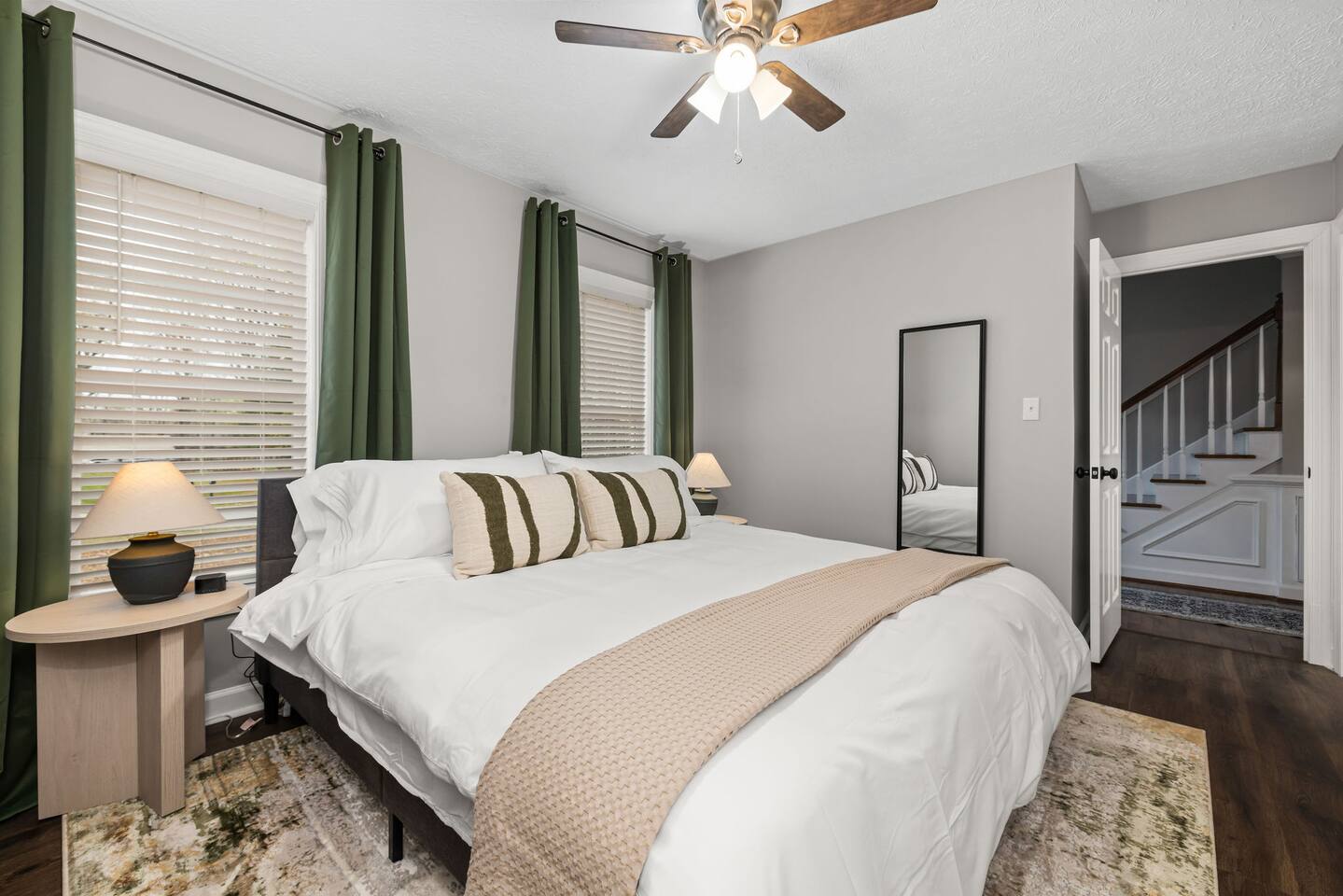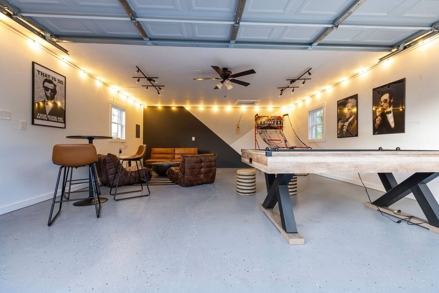 Sometimes it's hard to scroll through hundreds of listings and know which one will give you a clean, comfortable place with everything you need. This home is perfect if you like the idea of: -a quiet and convenient place close to great scenery & a historic town -a family-friendly place where you can spread out -"extras" like a movie theater and a gameroom -learning some Virginia history and enjoying nearby walking trails -your baby having their own nursery with a crib So let's give you a rundown of what you can expect at the Jefferson. (Fun fact: this house is named the Jefferson because it's only a few blocks from Thomas Jefferson's summer home, Poplar Forest! There's lots of paved walking trails and it's a PERFECT spot for golden hour photos!) **MAIN FLOOR** KITCHEN -stainless fridge, oven/range, microwave, dishwasher -Keurig + regular coffee pot & tea kettle -pots/pans, dishware, glasses, & everything you need to make meals! -breakfast table for 4 DINING ROOM -table for 8 LIVING ROOM #1 -sectional -small reclining massage chair! -chaise lounge that can convert into a queen sleeping mattress -65" Smart TV w/ Netflix and other streaming apps (sorry, no use of fireplace) LIVING ROOM #2 -couch + chairs -desk PRIMARY BEDROOM -king bed + smart TV -dresser -closet -access to bathroom FULL BATH (opens both from hallway AND the primary bedroom) -toilet -shower/tub combo -towels & washcloths -shampoo, conditioner, body wash -hair dryer LAUNDRY ROOM -washer & dryer available for your use **UPSTAIRS** BEDROOM #2 -king bed -dresser -large walk-in closet w/ window -desk & chair BEDROOM #3 -2 twin beds -window seat -dresser -large walk-in closet w/ window MOVIE ROOM: -65" smart TV -surround sound system -modular sofa so you can reconfigure how you like it for movie night! BEDROOM #4 (PRIVATE NURSERY) -crib -comfortable chair for nursing or rocking -a few bedtime stories about Virginia HALLWAY FULL BATHROOM -shower/tub combo -sink, toilet -towels & washcloths -shampoo, conditioner, body wash, hair dryer CLIMATE CONTROL: The house is heated and cooled by central heat and air. PARKING: There is off-street parking in the driveway for a maximum of 3-4 cars. **OUTSIDE** BACK DECK: outdoor table and chairs for 8, level yard (we re-seeded in April so it'll take a little time for the grass to grow in), gas grill GARAGE GAME ROOM!: air hockey, basketball arcade game, corn hole, ring game, seating area, pub table, bluetooth speaker CHECK IN: Guests check in at their own convenience between 4pm - 10pm with a personalized code. *You must be over the age of 25 to rent this home.* Linens and towels provided. SO MUCH TO DO NEARBY: Thomas Jefferson's Poplar Forest: 2 min Walking trails: 2 min Groceries: 5 min (Kroger) Restaurants: 5 min (steakhouse, fast food, mexican food, pizza, and more!) Liberty University: 14 min University of Lynchburg: 19 min Historic Downtown LYH: 20 min Shopping (Target, mall, etc.): 15 min Hill City AquaZoo: 19 min Snowflex (year-round skiing and tubing): 15 min Appomattox Courthouse: 35 min Hiking at Sharp Top Mountain: 40 min Popular day trips include: hiking in the Blue Ridge Mountains, driving the scenic Blue Ridge Parkway, Natural Bridge, Virginia Safari Park, D-Day Memorial and Smith Mountain Lake. HOSTED BY: The Jefferson is hosted by All Belong Co, a boutique hospitality team dedicated to providing 5 star stays.