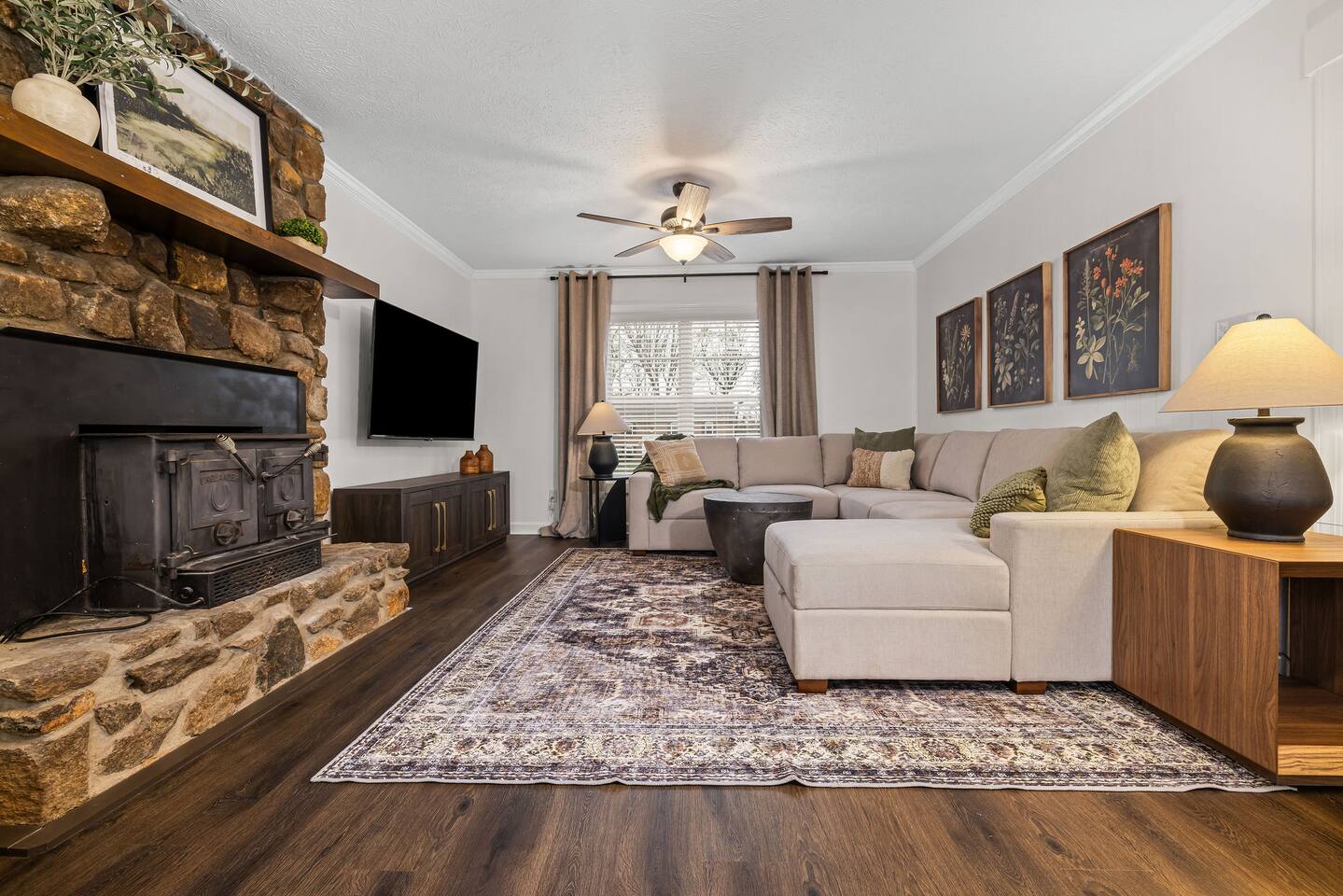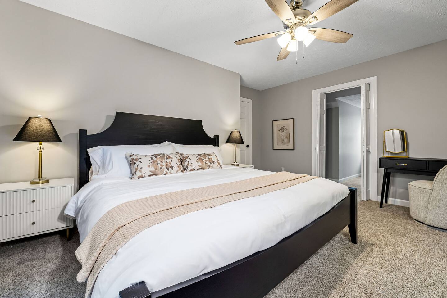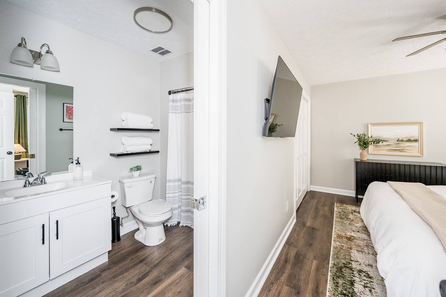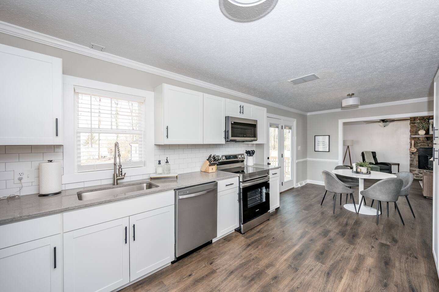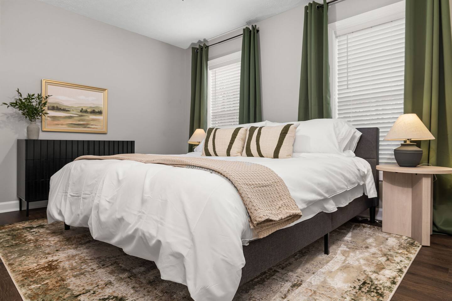 Sometimes it's hard to scroll through hundreds of listings and know which one will give you a clean, comfortable place with everything you need. This home is perfect if you like the idea of: -a quiet and convenient place close to great scenery & a historic town -a family-friendly place where you can spread out -"extras" like a movie theater and a gameroom -learning some Virginia history and enjoying nearby walking trails -your baby having their own nursery with a crib So let's give you a rundown of what you can expect at the Jefferson. (Fun fact: this house is named the Jefferson because it's only a few blocks from Thomas Jefferson's summer home, Poplar Forest! There's lots of paved walking trails and it's a PERFECT spot for golden hour photos!) **MAIN FLOOR** KITCHEN -stainless fridge, oven/range, microwave, dishwasher -Keurig + regular coffee pot & tea kettle -pots/pans, dishware, glasses, & everything you need to make meals! -breakfast table for 4 DINING ROOM -table for 8 LIVING ROOM #1 -sectional -small reclining massage chair! -chaise lounge that can convert into a queen sleeping mattress -65" Smart TV w/ Netflix and other streaming apps (sorry, no use of fireplace) LIVING ROOM #2 -couch + chairs -desk PRIMARY BEDROOM -king bed + smart TV -dresser -closet -access to bathroom FULL BATH (opens both from hallway AND the primary bedroom) -toilet -shower/tub combo -towels & washcloths -shampoo, conditioner, body wash -hair dryer LAUNDRY ROOM -washer & dryer available for your use **UPSTAIRS** BEDROOM #2 -king bed -dresser -large walk-in closet w/ window -desk & chair BEDROOM #3 -2 twin beds -window seat -dresser -large walk-in closet w/ window MOVIE ROOM: -65" smart TV -surround sound system -modular sofa so you can reconfigure how you like it for movie night! BEDROOM #4 (PRIVATE NURSERY) -crib -comfortable chair for nursing or rocking -a few bedtime stories about Virginia HALLWAY FULL BATHROOM -shower/tub combo -sink, toilet -towels & washcloths -shampoo, conditioner, body wash, hair dryer CLIMATE CONTROL: The house is heated and cooled by central heat and air. PARKING: There is off-street parking in the driveway for a maximum of 3-4 cars. **OUTSIDE** BACK DECK: outdoor table and chairs for 8, level yard (we re-seeded in April so it'll take a little time for the grass to grow in), gas grill GARAGE GAME ROOM!: air hockey, basketball arcade game, corn hole, ring game, seating area, pub table, bluetooth speaker CHECK IN: Guests check in at their own convenience between 4pm - 10pm with a personalized code. *You must be over the age of 25 to rent this home.* Linens and towels provided. SO MUCH TO DO NEARBY: Thomas Jefferson's Poplar Forest: 2 min Walking trails: 2 min Groceries: 5 min (Kroger) Restaurants: 5 min (steakhouse, fast food, mexican food, pizza, and more!) Liberty University: 14 min University of Lynchburg: 19 min Historic Downtown LYH: 20 min Shopping (Target, mall, etc.): 15 min Hill City AquaZoo: 19 min Snowflex (year-round skiing and tubing): 15 min Appomattox Courthouse: 35 min Hiking at Sharp Top Mountain: 40 min Popular day trips include: hiking in the Blue Ridge Mountains, driving the scenic Blue Ridge Parkway, Natural Bridge, Virginia Safari Park, D-Day Memorial and Smith Mountain Lake. HOSTED BY: The Jefferson is hosted by All Belong Co, a boutique hospitality team dedicated to providing 5 star stays.