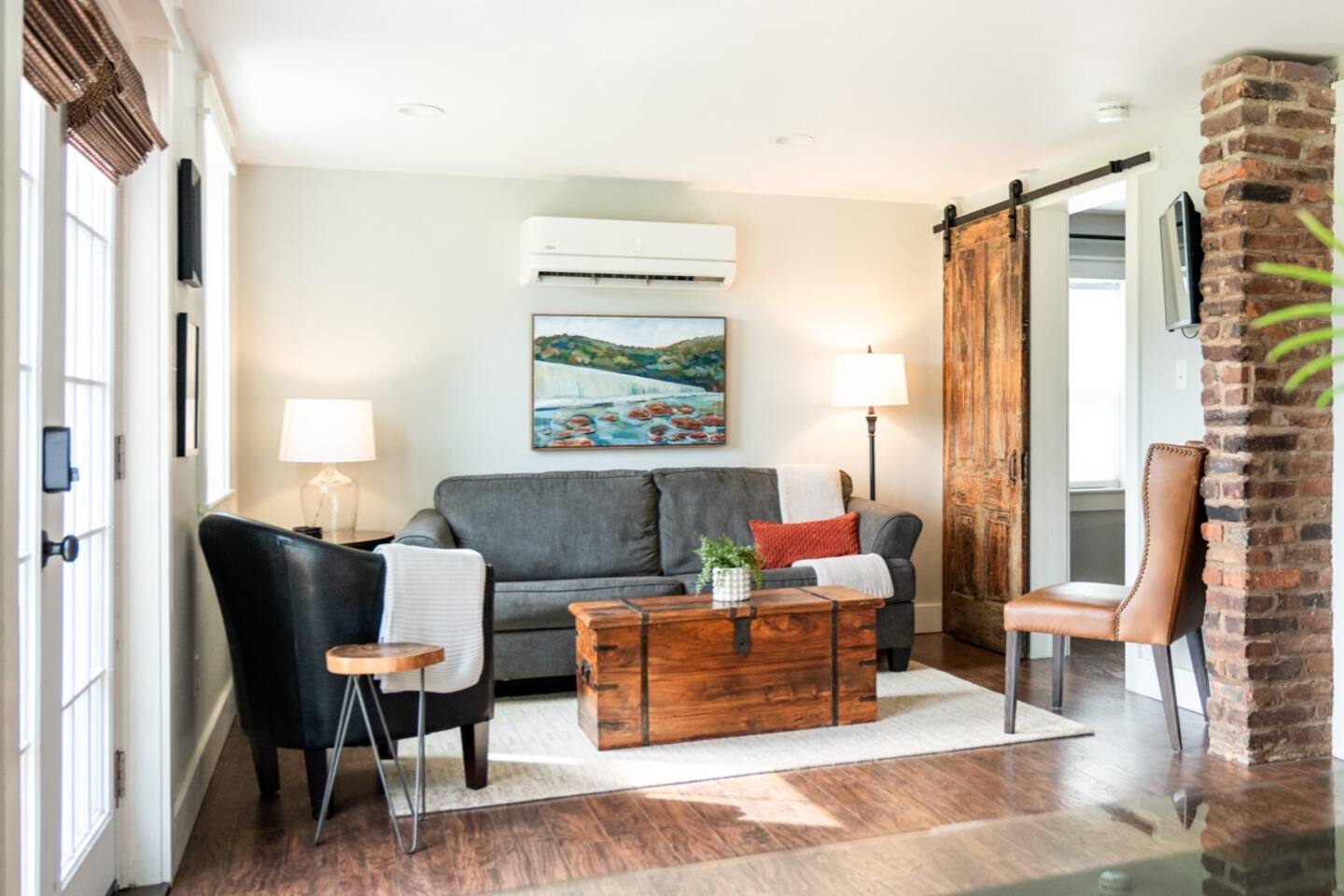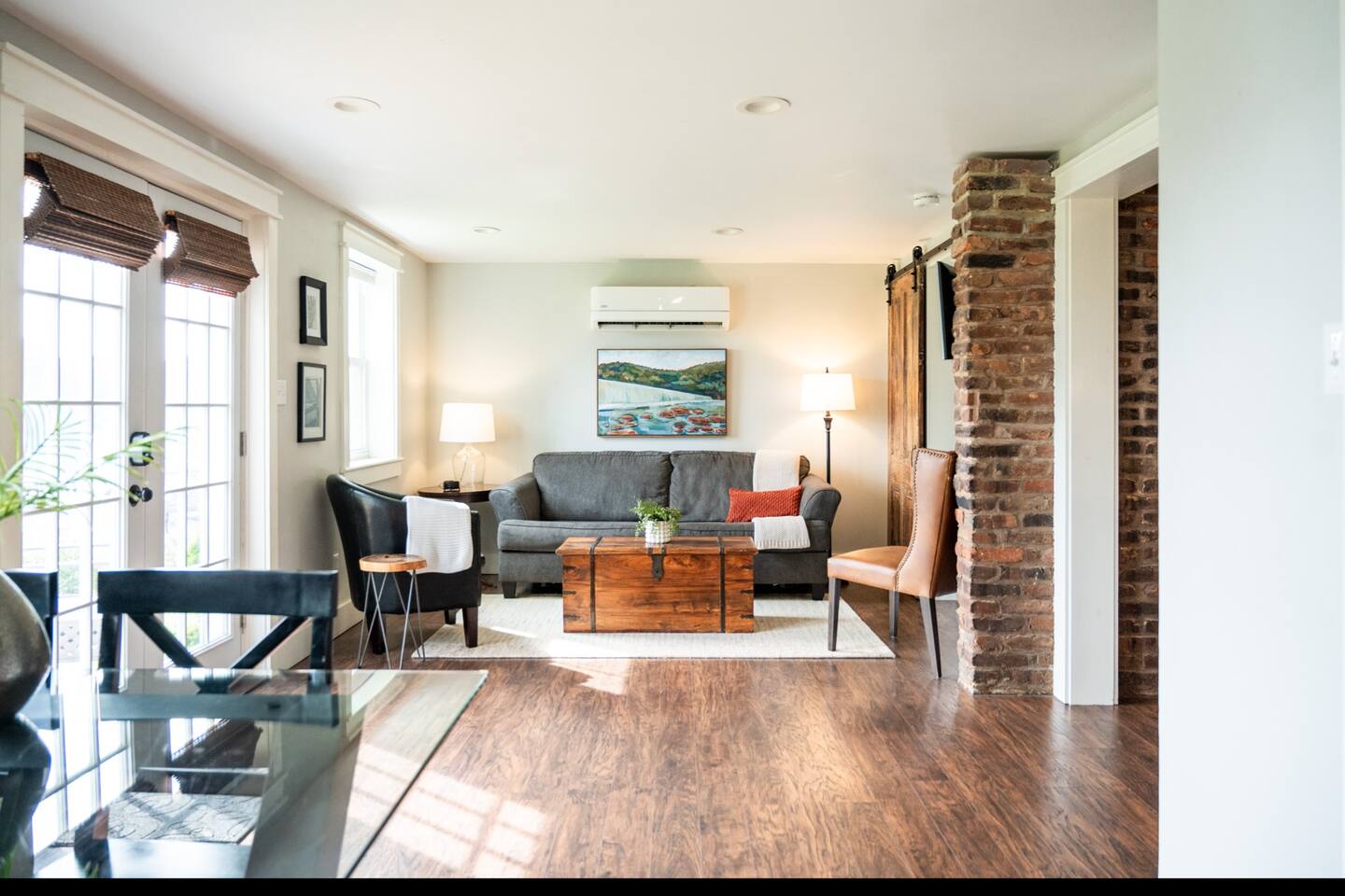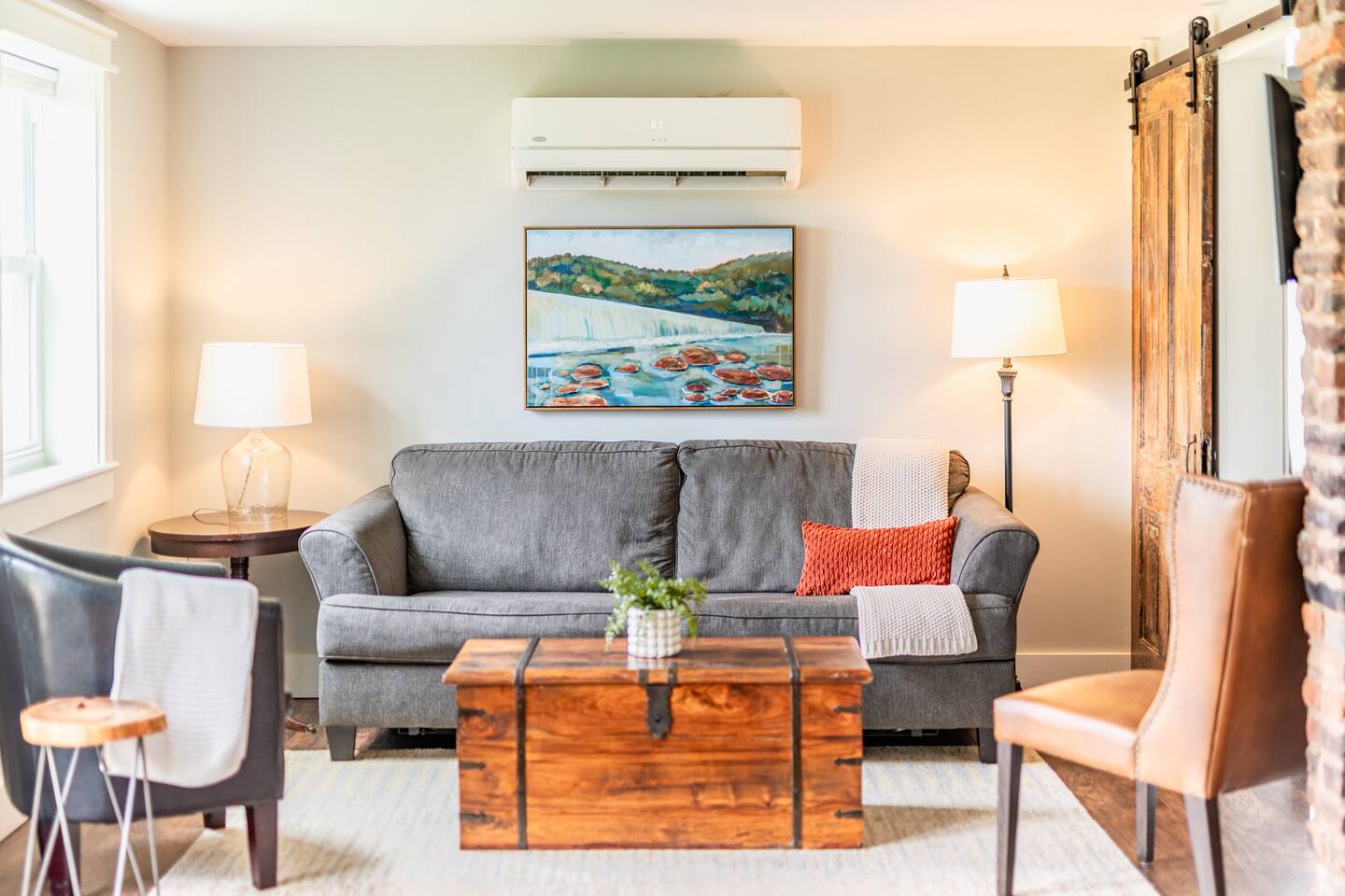 To save our listing, click the heart in the top right corner. The home is located in historic Daniel's Hill and boasts some of the most beautiful views of the James River downtown has to offer. Also situated on the river is a historic iron pipe factory and a railroad. It is fascinating to watch trains go by on occasion and watch the workings of a 24-hour factory below the property, but please note there is a risk for noise. Our family lives upstairs in the main house (heck, our teenage children can be a risk for noise on occasion haha), but we are not bothered by it. We realize it may not be for everyone and some nights just work out to be louder than others. We have insulated the home with a noise-reducing insulation and we provide a white noise sound machine in the bedroom should guests feel they need it. Exterior Camera: We have one security camera on the house pointed at our driveway for your safety. It records per motion-activation & operates 24/7. We can access it via our app. There are NO cameras inside the home.