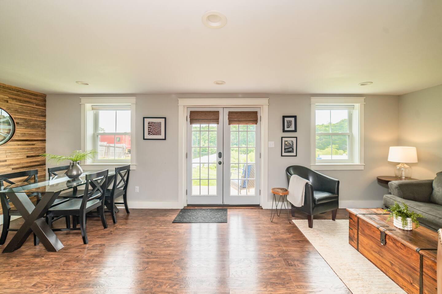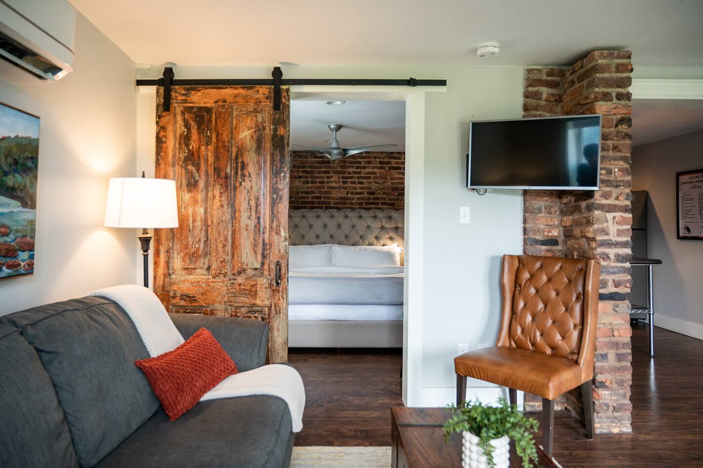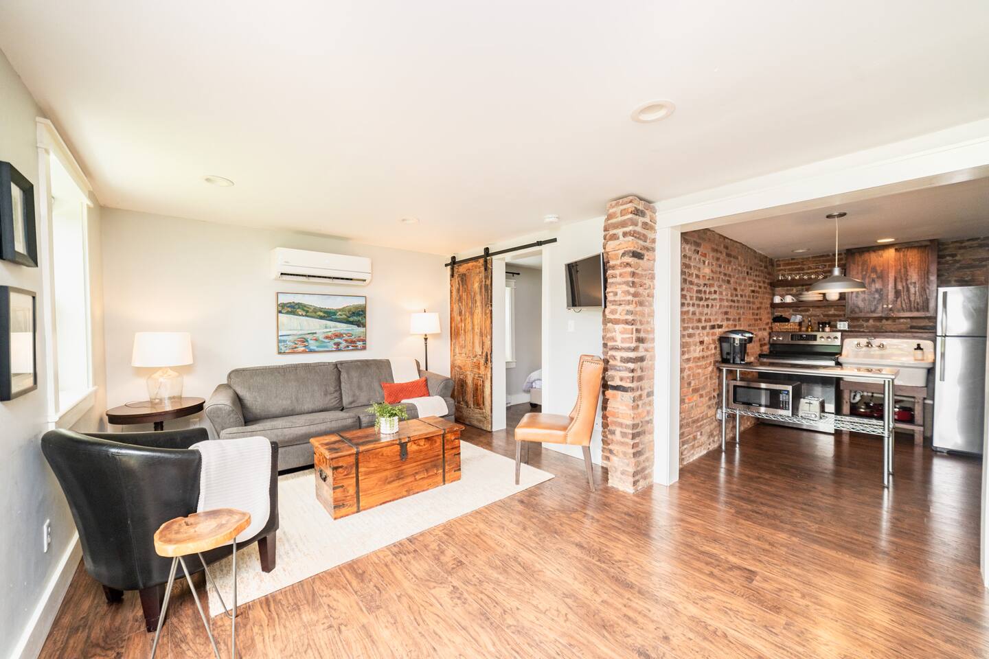 To save our listing, click the heart in the top right corner. The home is located in historic Daniel's Hill and boasts some of the most beautiful views of the James River downtown has to offer. Also situated on the river is a historic iron pipe factory and a railroad. It is fascinating to watch trains go by on occasion and watch the workings of a 24-hour factory below the property, but please note there is a risk for noise. Our family lives upstairs in the main house (heck, our teenage children can be a risk for noise on occasion haha), but we are not bothered by it. We realize it may not be for everyone and some nights just work out to be louder than others. We have insulated the home with a noise-reducing insulation and we provide a white noise sound machine in the bedroom should guests feel they need it. Exterior Camera: We have one security camera on the house pointed at our driveway for your safety. It records per motion-activation & operates 24/7. We can access it via our app. There are NO cameras inside the home.