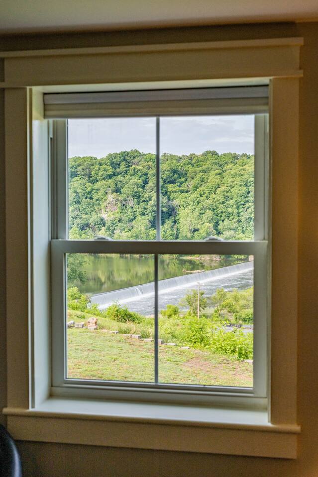 It's hard to find better views of the James River anywhere in Lynchburg! BEDROOM: -king bed + historic exposed brick -cable TV w/ streaming apps & 100+ channels -sound machine LIVING ROOM -queen sleeper sofa -cable tv with Netflix & 125+ channels -2 sitting chairs -local art of the James River view! DINING ROOM -table and chairs for 4, closet KITCHEN -stainless steel range/stove, fridge, microwave -Keurig w/ K-cups, creamers, sugar -stocked kitchen (pots/pans, glassware, utensils, etc) BATHROOM -shower, sink, toilet -towels, shampoo, conditioner, & body wash -hair dryer OUTSIDE: -Once you park in the driveway, there is a step stone path along the side of the house taking you to the private apartment. (Those with major mobility issues might have trouble with the downward slope of the path.) -Entrance is through a set of private French doors that allow lots of natural light and beautiful views of the James River and Scotts Mill Dam, deck with chair CLIMATE CONTROL Energy efficient ductless air unit with a remote! (plus a double layer of insulation, so it stays cool in the summer and warm all winter long.) TV SERVICES - No cable. Smart TV streaming services only (guests must use personal login credentials) PARKING We offer a designated parking spot in our driveway to guests. For a second vehicle, street parking is also allowed. WHAT'S AROUND The house is in a national historic district, and the neighborhood is full of beautiful, architecturally diverse historic homes. Downtown shops and restaurants are a 10 minute walk. At the end of the street is an entrance to the Blackwater Creek trail system, which includes miles of scenic, paved walking and biking trails. Point of Honor, the home of Patrick Henry's physician, Dr. George Cabell, is only a stone's throw away. Another cool tidbit is that we also offer a red train caboose Airbnb ("James Station") on the adjacent lot. You'll see it out the back of the apartment and we hope you'll come back for a unique stay!