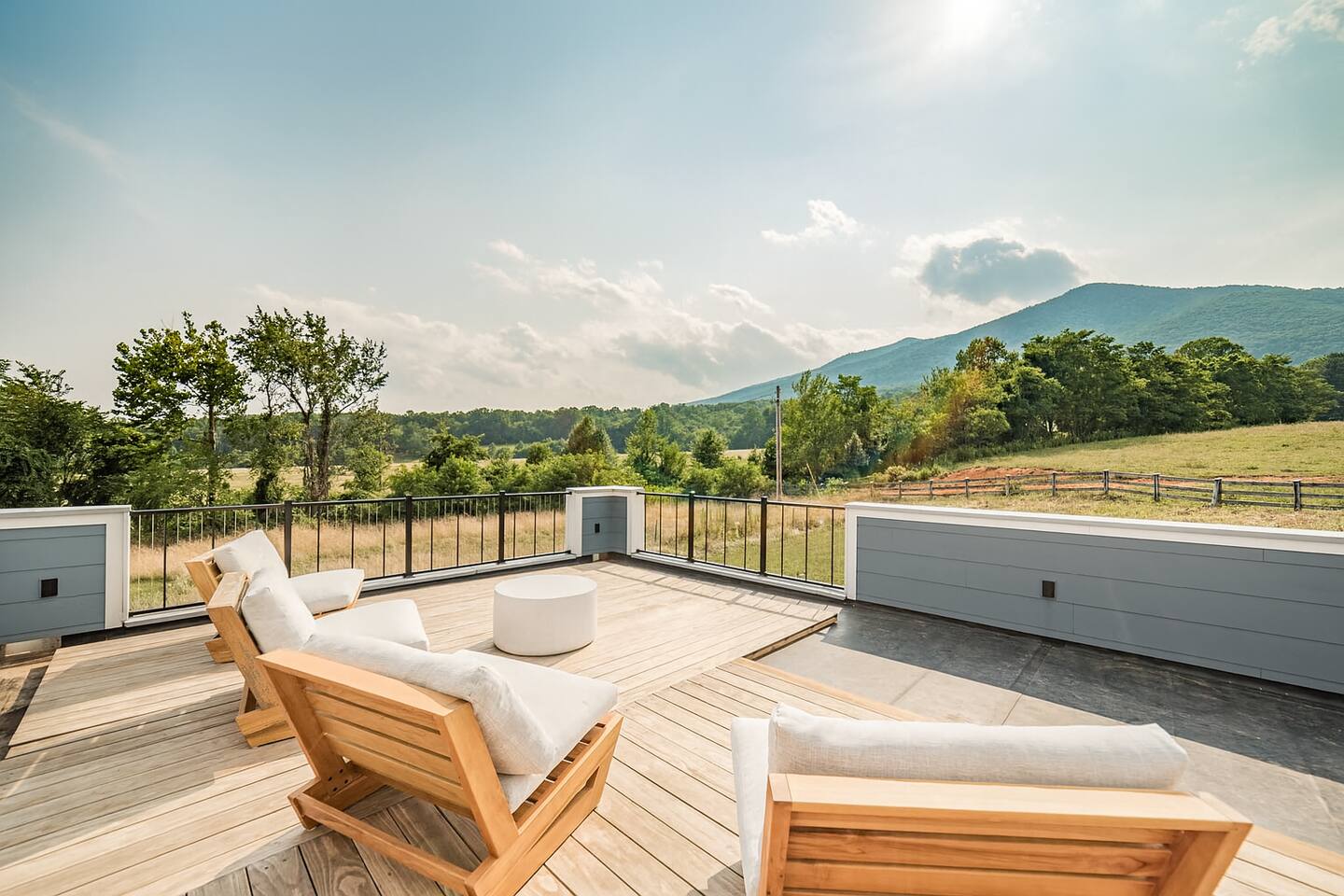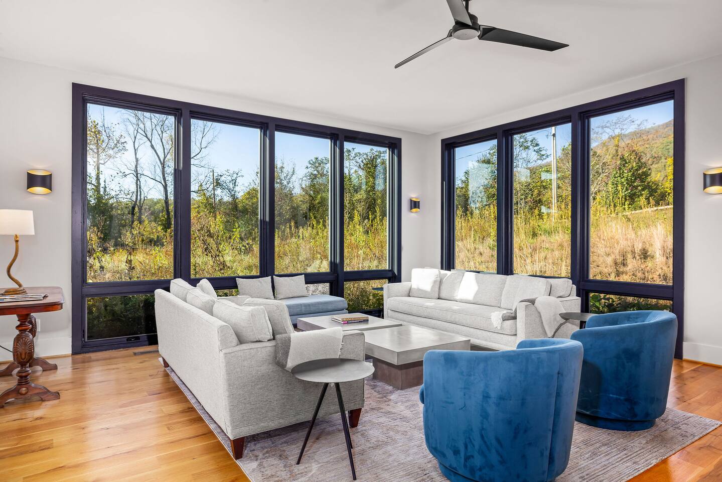 One-of-a-kind home to explore and enjoy the beautiful Blue Ridge Mtns! -Gorgeous sunset mountain views + star gazing on the rooftop deck -Gourmet chef's kitchen, large windows, natural light, edible fruit trees -Minutes to scenic Blue Ridge Pkwy & walk to great hiking -Fire pit for making s'mores, games for the kids, stocked pond and creek! -Sedalia Center 5 min, Natural Bridge 30 min, Appalachian Trail 30 min, Lynchburg 35 min, Safari Park 40 min