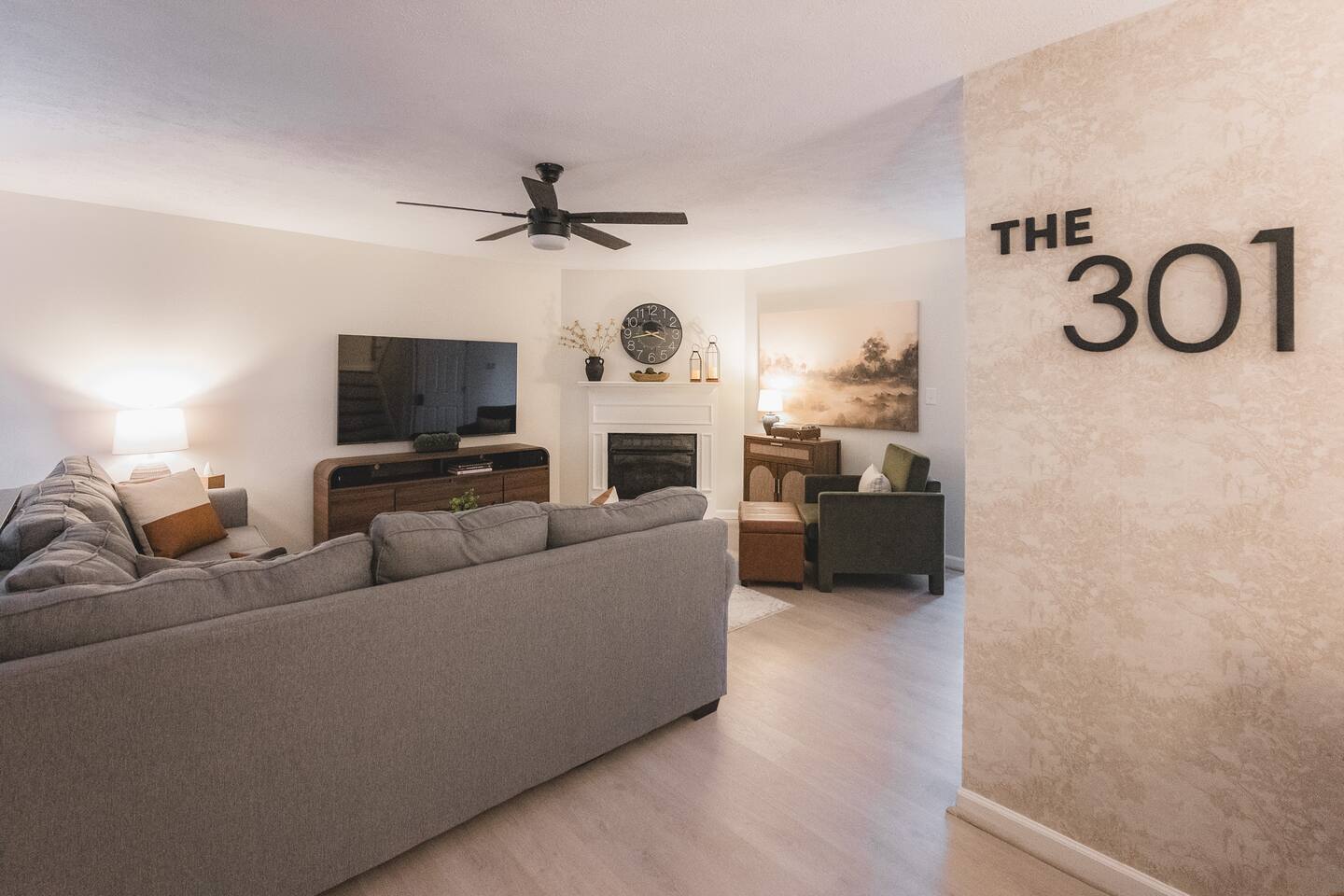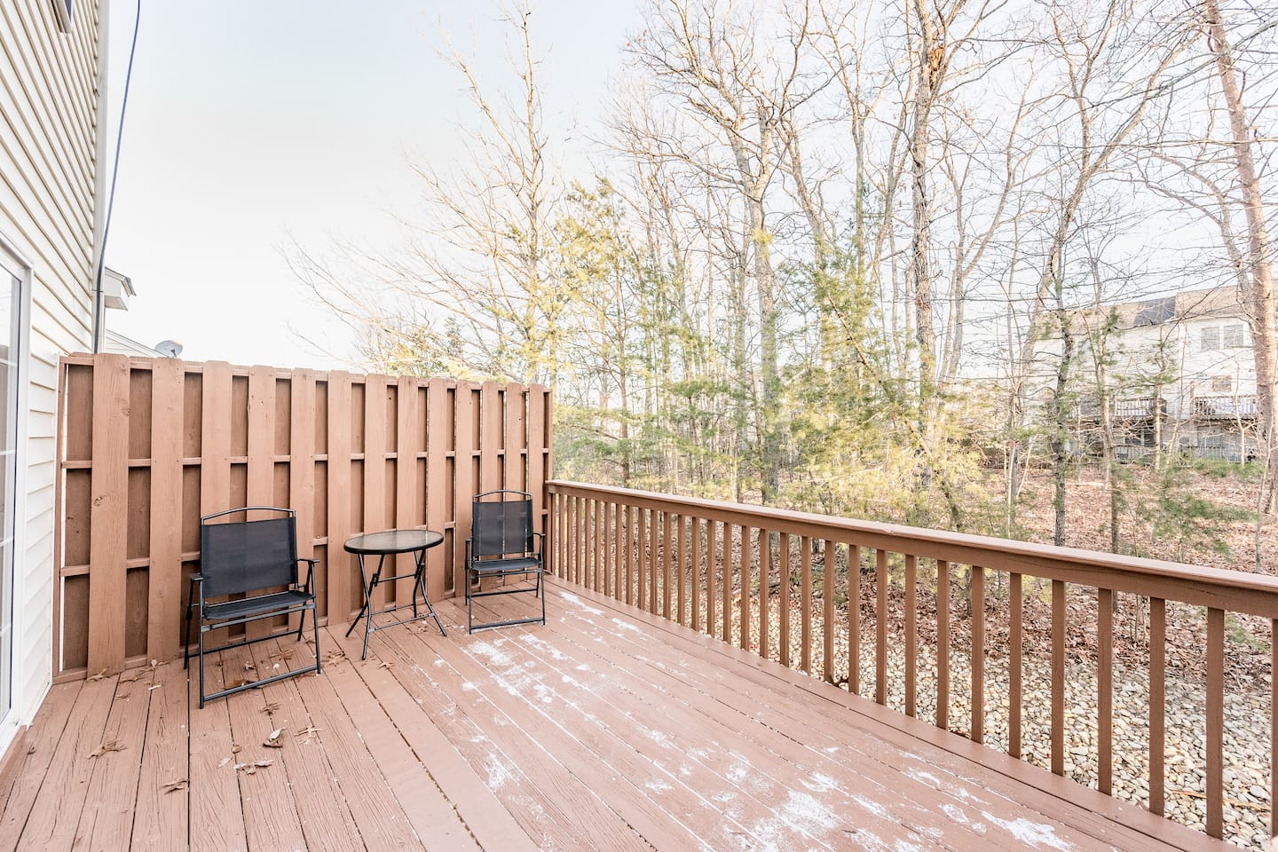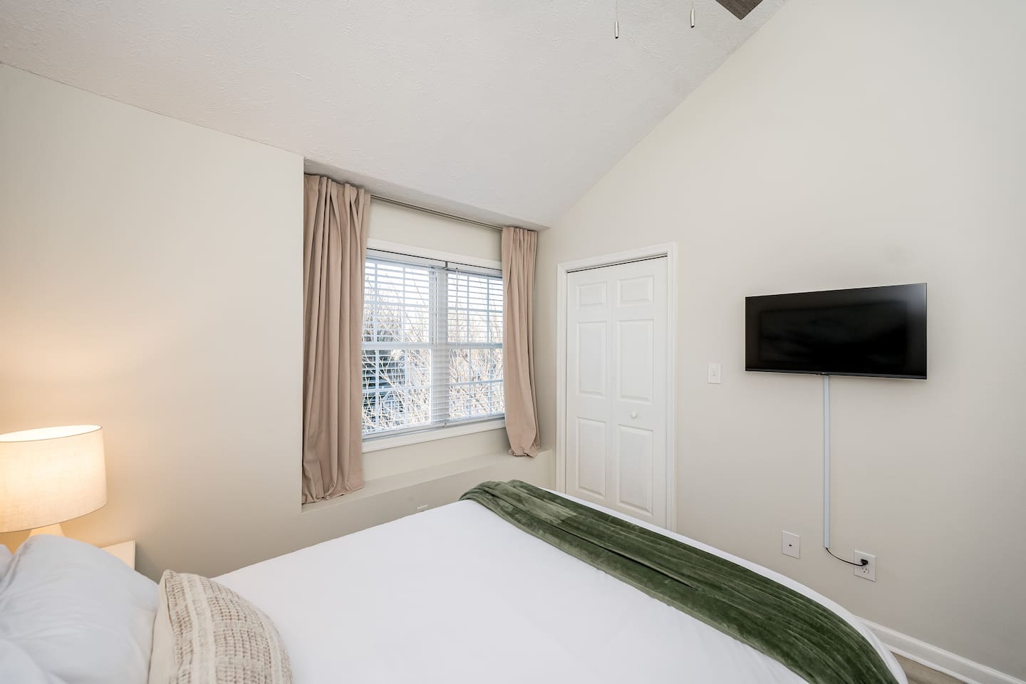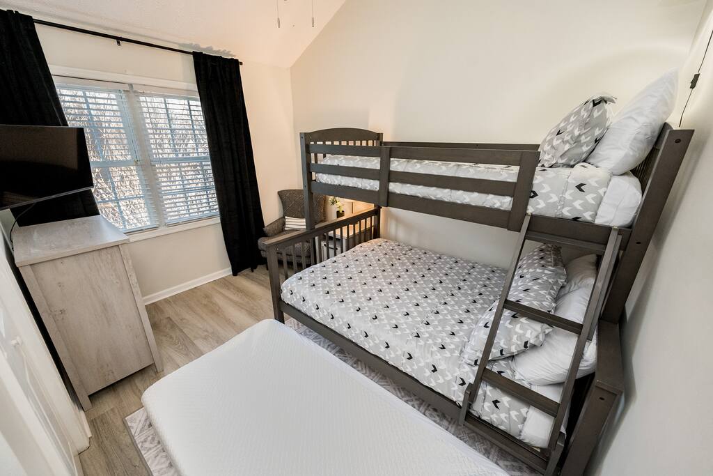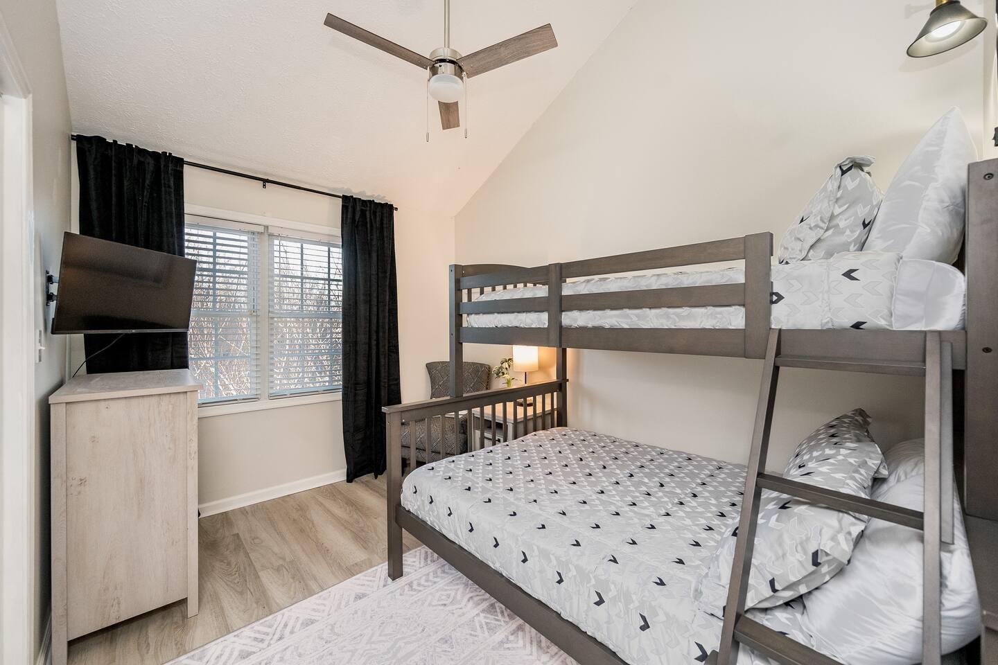 Here's what you'll find at The 301: **MAIN LEVEL** 🛋️ LIVING/ENTRYWAY ✓ Smart TV ✓ Large sectional + accent chairs ✓ Record player ✓ High top table w/ seating for 2 ✓ Designated work station 🍳 KITCHEN/DINING (fully equipped!) ✓ Stainless steel appliances (fridge, stove, microwave, dishwasher, toaster) ✓ Pots/pans, dishware, & everything needed to cook meals ✓ Coffee bar w/ Keurig, K-Cups & regular coffee maker ✓ Table & chairs - seating for 6 🫧 LAUNDRY ROOM ✓ Full size washer/dryer ✓ Vacuum 🌳 BALCONY ✓ Bistro table & chairs 🚽 HALF BATH ✓ Toilet & sink **UPSTAIRS** 🛏️ PRIMARY BEDROOM ✓ King bed ✓ Smart TV ✓ Dresser + nightstands ✓ Bench + accent chair ✓ Ceiling fan ✓ Walk-in closet ✓ Pack n' Play ✓ En-suite bathroom 🛁 PRIMARY BATHROOM ✓ Sink vanity + toilet ✓ Shower/tub combo ✓ Shampoo, conditioner, body wash ✓ Towels + hairdryer ✓ Linen closet 🛏️ BEDROOM #2 ✓ Bunk bed (Twin/Full) ✓ Pull out twin mattress under bottom bunk if needed ✓ Dresser + nightstand ✓ Smart TV ✓ Accent chair ✓ Ceiling fan ✓ Closet 🛁 HALL BATHROOM ✓ Sink vanity + toilet ✓ Shower/tub combo ✓ Shampoo, conditioner, body wash ✓ Towels + hairdryer 🛏️ BEDROOM #3 ✓ Queen bed ✓ Dresser + nightstand ✓ Smart TV ✓ Accent chair ✓ Ceiling fan ✓ Closet ❄️ CLIMATE CONTROL: Central heat and air. Guests can control their temperature with a thermostats located on both levels. 🖥️ TV SERVICES: Smart TV streaming services only (guests must use personal login credentials) 🐾 PETS: We allow up to 2 well-behaved dogs with an additional $100 payment per dog and require the following agreements: ✓ Dogs are not allowed on the furniture. ✓ Dogs will be crated when owners are not present (we have a large dog crate available for your use!) ✓ Dogs are up to date on all flea & tick treatments. 🏊♂️ COMMUNITY POOL: 🚗 PARKING: Street parking is available in front of the townhome. There's usually enough room for 2 cars in front of the home, but you may park along both sides of the street. 📍WHAT'S NEARBY: • Lynchburg airport: 6 min • Restaurants (Mellow Mushroom, Mission BBQ, Papa Gallo) 4-10 min • Liberty University: 8 min • The Muse Coffee Company: 10 min • Hill City AquaZoo: 13 min • University of Lynchburg: 15 min • Historic Downtown: 15 min • Monument Terrace: 15 min (139 stairs is great for a morning workout!) • Amazement Square (awesome children's museum): 15 min • Academy Center of the Arts: 17 minutes • Blackwater Creek Trail entrance: 17 minutes •Skateboard Park: 18 minutes • Randolph College: 22 minutes • VA Baptist & Lynchburg General Hospitals: 20 min AREA ATTRACTIONS & DAY TRIPS: Hiking along the Blue Ridge Parkway Appomattox Court House Natural Bridge Virginia Safari Park Thomas Jefferson's Poplar Forest Smith Mountain Lake Liberty University's Snowflex Center (year-round skiing & tubing)