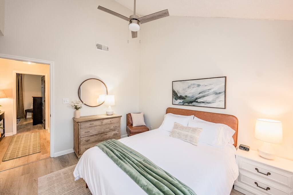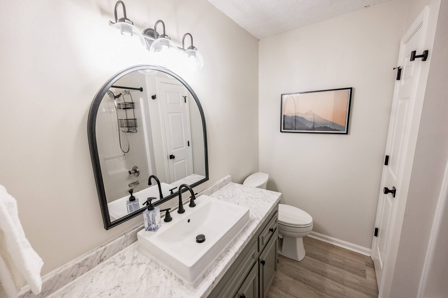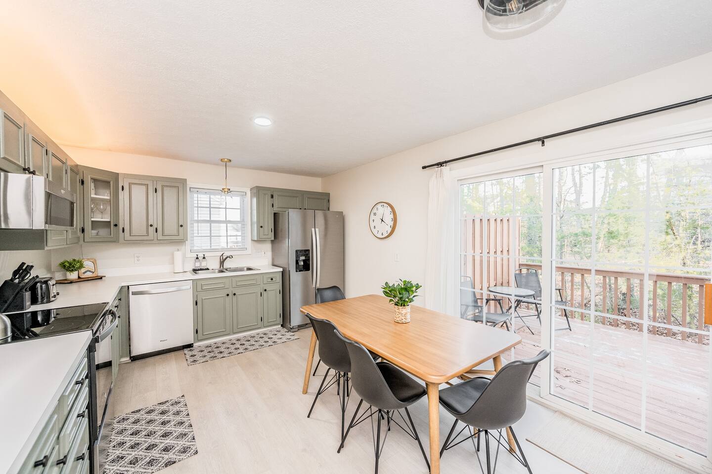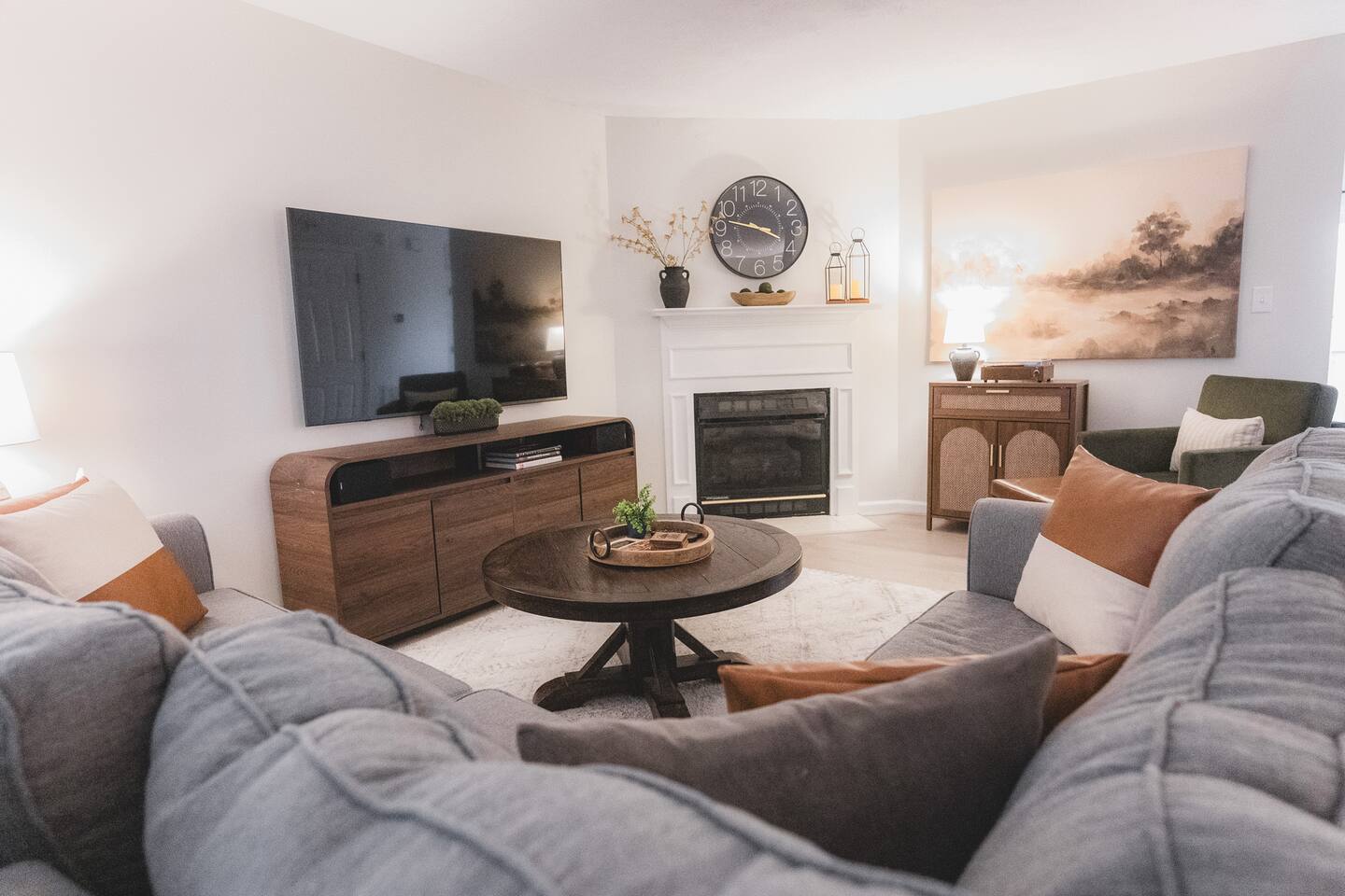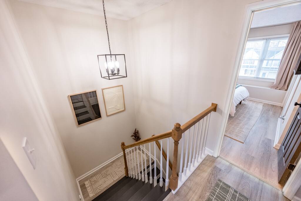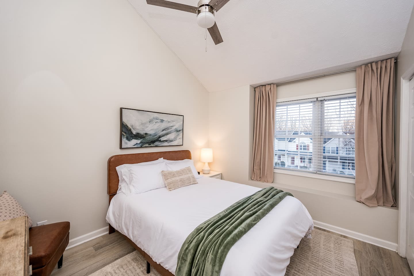 Here's what you'll find at The 301: **MAIN LEVEL** 🛋️ LIVING/ENTRYWAY ✓ Smart TV ✓ Large sectional + accent chairs ✓ Record player ✓ High top table w/ seating for 2 ✓ Designated work station 🍳 KITCHEN/DINING (fully equipped!) ✓ Stainless steel appliances (fridge, stove, microwave, dishwasher, toaster) ✓ Pots/pans, dishware, & everything needed to cook meals ✓ Coffee bar w/ Keurig, K-Cups & regular coffee maker ✓ Table & chairs - seating for 6 🫧 LAUNDRY ROOM ✓ Full size washer/dryer ✓ Vacuum 🌳 BALCONY ✓ Bistro table & chairs 🚽 HALF BATH ✓ Toilet & sink **UPSTAIRS** 🛏️ PRIMARY BEDROOM ✓ King bed ✓ Smart TV ✓ Dresser + nightstands ✓ Bench + accent chair ✓ Ceiling fan ✓ Walk-in closet ✓ Pack n' Play ✓ En-suite bathroom 🛁 PRIMARY BATHROOM ✓ Sink vanity + toilet ✓ Shower/tub combo ✓ Shampoo, conditioner, body wash ✓ Towels + hairdryer ✓ Linen closet 🛏️ BEDROOM #2 ✓ Bunk bed (Twin/Full) ✓ Pull out twin mattress under bottom bunk if needed ✓ Dresser + nightstand ✓ Smart TV ✓ Accent chair ✓ Ceiling fan ✓ Closet 🛁 HALL BATHROOM ✓ Sink vanity + toilet ✓ Shower/tub combo ✓ Shampoo, conditioner, body wash ✓ Towels + hairdryer 🛏️ BEDROOM #3 ✓ Queen bed ✓ Dresser + nightstand ✓ Smart TV ✓ Accent chair ✓ Ceiling fan ✓ Closet ❄️ CLIMATE CONTROL: Central heat and air. Guests can control their temperature with a thermostats located on both levels. 🖥️ TV SERVICES: Smart TV streaming services only (guests must use personal login credentials) 🐾 PETS: We allow up to 2 well-behaved dogs with an additional $100 payment per dog and require the following agreements: ✓ Dogs are not allowed on the furniture. ✓ Dogs will be crated when owners are not present (we have a large dog crate available for your use!) ✓ Dogs are up to date on all flea & tick treatments. 🏊♂️ COMMUNITY POOL: 🚗 PARKING: Street parking is available in front of the townhome. There's usually enough room for 2 cars in front of the home, but you may park along both sides of the street. 📍WHAT'S NEARBY: • Lynchburg airport: 6 min • Restaurants (Mellow Mushroom, Mission BBQ, Papa Gallo) 4-10 min • Liberty University: 8 min • The Muse Coffee Company: 10 min • Hill City AquaZoo: 13 min • University of Lynchburg: 15 min • Historic Downtown: 15 min • Monument Terrace: 15 min (139 stairs is great for a morning workout!) • Amazement Square (awesome children's museum): 15 min • Academy Center of the Arts: 17 minutes • Blackwater Creek Trail entrance: 17 minutes •Skateboard Park: 18 minutes • Randolph College: 22 minutes • VA Baptist & Lynchburg General Hospitals: 20 min AREA ATTRACTIONS & DAY TRIPS: Hiking along the Blue Ridge Parkway Appomattox Court House Natural Bridge Virginia Safari Park Thomas Jefferson's Poplar Forest Smith Mountain Lake Liberty University's Snowflex Center (year-round skiing & tubing)