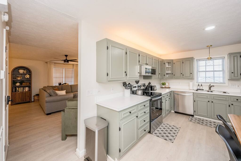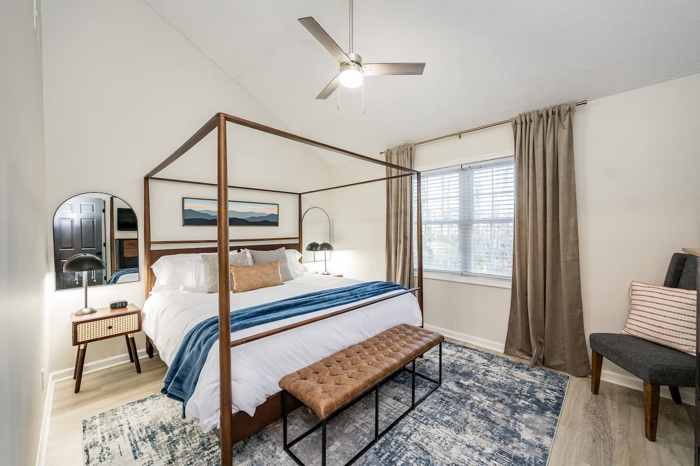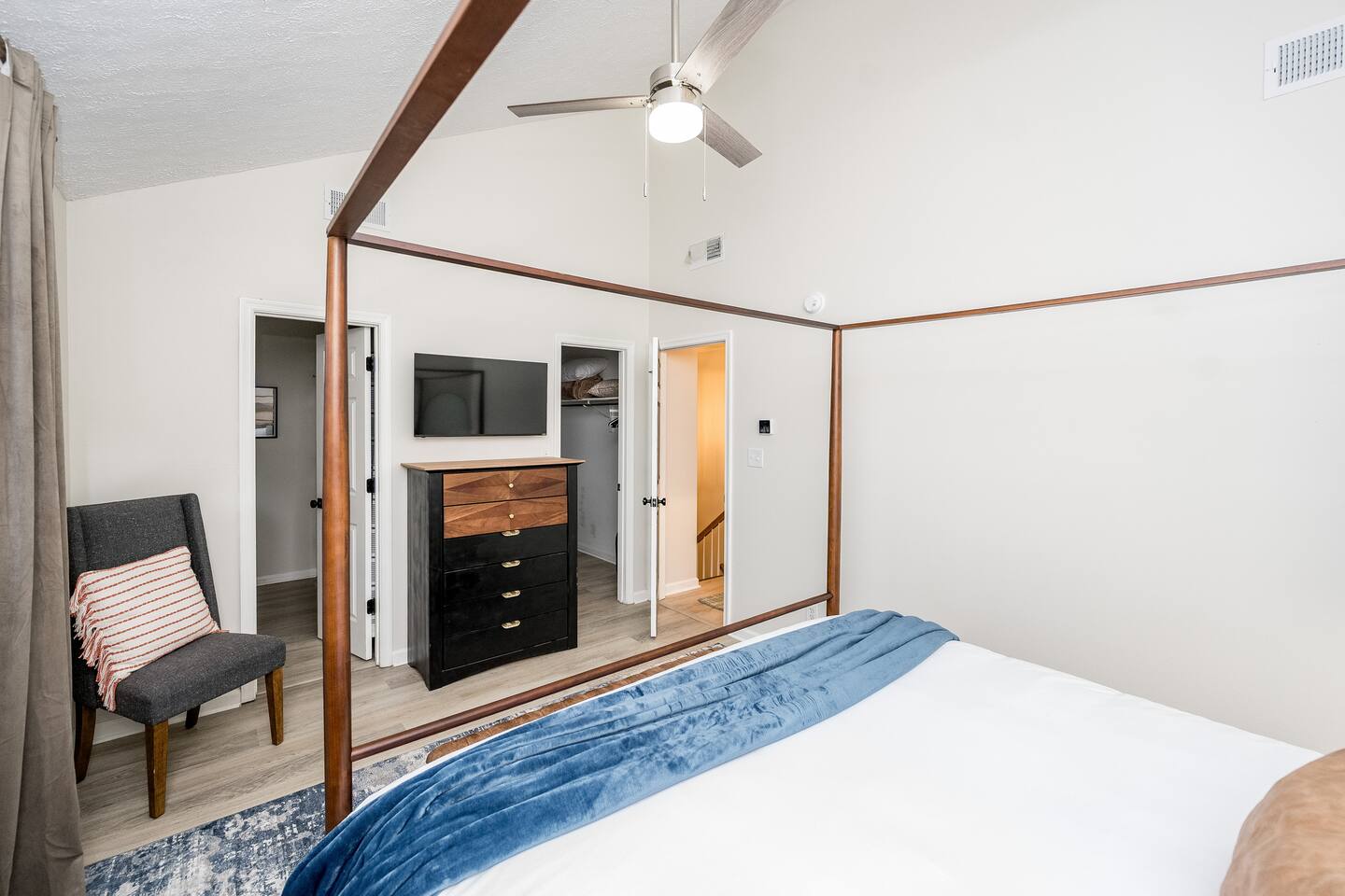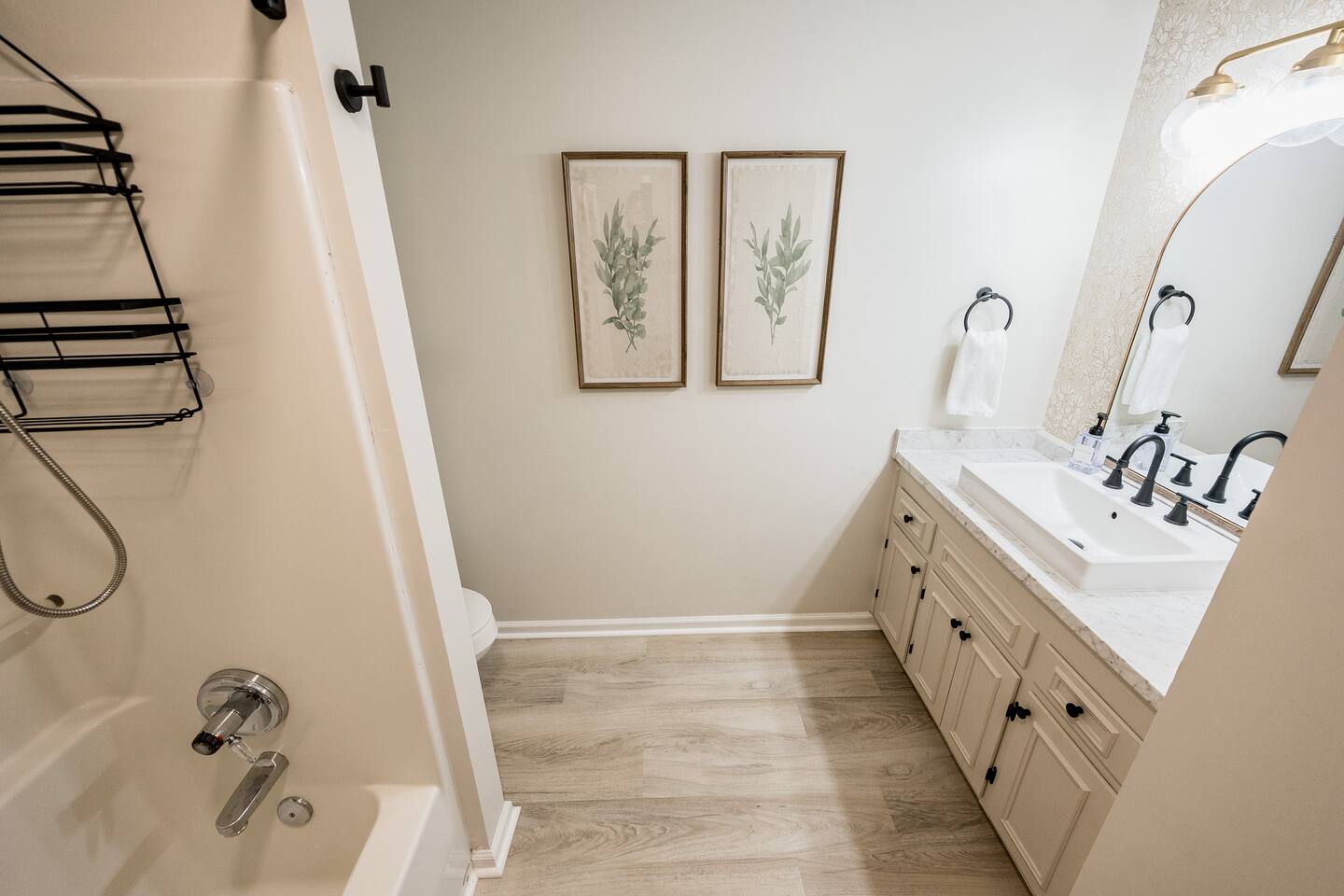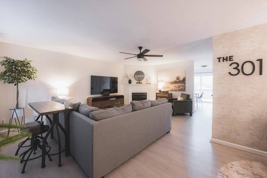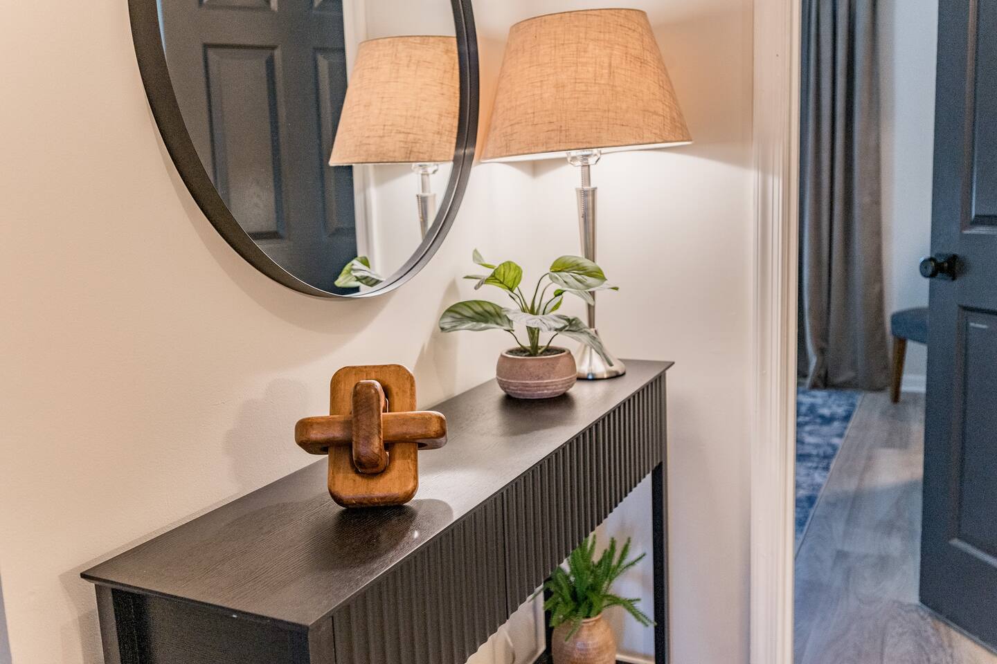 Here's what you'll find at The 301: **MAIN LEVEL** 🛋️ LIVING/ENTRYWAY ✓ Smart TV ✓ Large sectional + accent chairs ✓ Record player ✓ High top table w/ seating for 2 ✓ Designated work station 🍳 KITCHEN/DINING (fully equipped!) ✓ Stainless steel appliances (fridge, stove, microwave, dishwasher, toaster) ✓ Pots/pans, dishware, & everything needed to cook meals ✓ Coffee bar w/ Keurig, K-Cups & regular coffee maker ✓ Table & chairs - seating for 6 🫧 LAUNDRY ROOM ✓ Full size washer/dryer ✓ Vacuum 🌳 BALCONY ✓ Bistro table & chairs 🚽 HALF BATH ✓ Toilet & sink **UPSTAIRS** 🛏️ PRIMARY BEDROOM ✓ King bed ✓ Smart TV ✓ Dresser + nightstands ✓ Bench + accent chair ✓ Ceiling fan ✓ Walk-in closet ✓ Pack n' Play ✓ En-suite bathroom 🛁 PRIMARY BATHROOM ✓ Sink vanity + toilet ✓ Shower/tub combo ✓ Shampoo, conditioner, body wash ✓ Towels + hairdryer ✓ Linen closet 🛏️ BEDROOM #2 ✓ Bunk bed (Twin/Full) ✓ Pull out twin mattress under bottom bunk if needed ✓ Dresser + nightstand ✓ Smart TV ✓ Accent chair ✓ Ceiling fan ✓ Closet 🛁 HALL BATHROOM ✓ Sink vanity + toilet ✓ Shower/tub combo ✓ Shampoo, conditioner, body wash ✓ Towels + hairdryer 🛏️ BEDROOM #3 ✓ Queen bed ✓ Dresser + nightstand ✓ Smart TV ✓ Accent chair ✓ Ceiling fan ✓ Closet ❄️ CLIMATE CONTROL: Central heat and air. Guests can control their temperature with a thermostats located on both levels. 🖥️ TV SERVICES: Smart TV streaming services only (guests must use personal login credentials) 🐾 PETS: We allow up to 2 well-behaved dogs with an additional $100 payment per dog and require the following agreements: ✓ Dogs are not allowed on the furniture. ✓ Dogs will be crated when owners are not present (we have a large dog crate available for your use!) ✓ Dogs are up to date on all flea & tick treatments. 🏊♂️ COMMUNITY POOL: 🚗 PARKING: Street parking is available in front of the townhome. There's usually enough room for 2 cars in front of the home, but you may park along both sides of the street. 📍WHAT'S NEARBY: • Lynchburg airport: 6 min • Restaurants (Mellow Mushroom, Mission BBQ, Papa Gallo) 4-10 min • Liberty University: 8 min • The Muse Coffee Company: 10 min • Hill City AquaZoo: 13 min • University of Lynchburg: 15 min • Historic Downtown: 15 min • Monument Terrace: 15 min (139 stairs is great for a morning workout!) • Amazement Square (awesome children's museum): 15 min • Academy Center of the Arts: 17 minutes • Blackwater Creek Trail entrance: 17 minutes •Skateboard Park: 18 minutes • Randolph College: 22 minutes • VA Baptist & Lynchburg General Hospitals: 20 min AREA ATTRACTIONS & DAY TRIPS: Hiking along the Blue Ridge Parkway Appomattox Court House Natural Bridge Virginia Safari Park Thomas Jefferson's Poplar Forest Smith Mountain Lake Liberty University's Snowflex Center (year-round skiing & tubing)